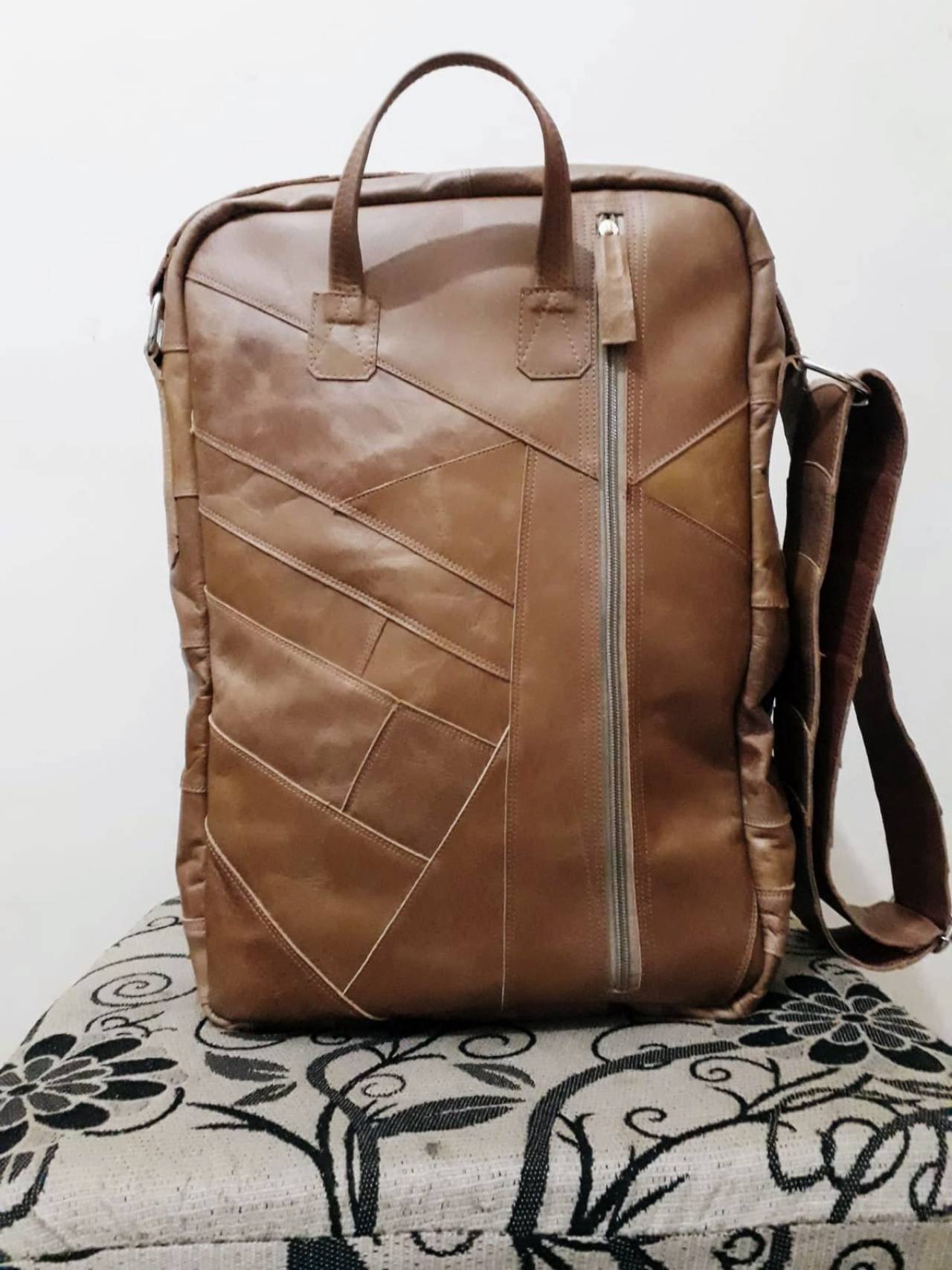 Bolsa lateral caramelo com espaço para notebook (almofadada), detalhes em tiras