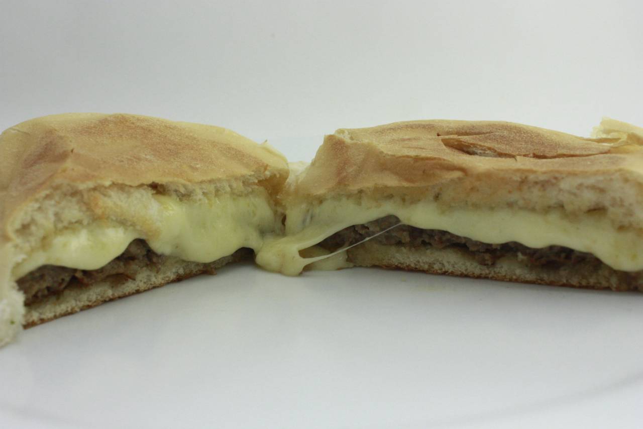 Hambúrguer, queijo e vinagrete.