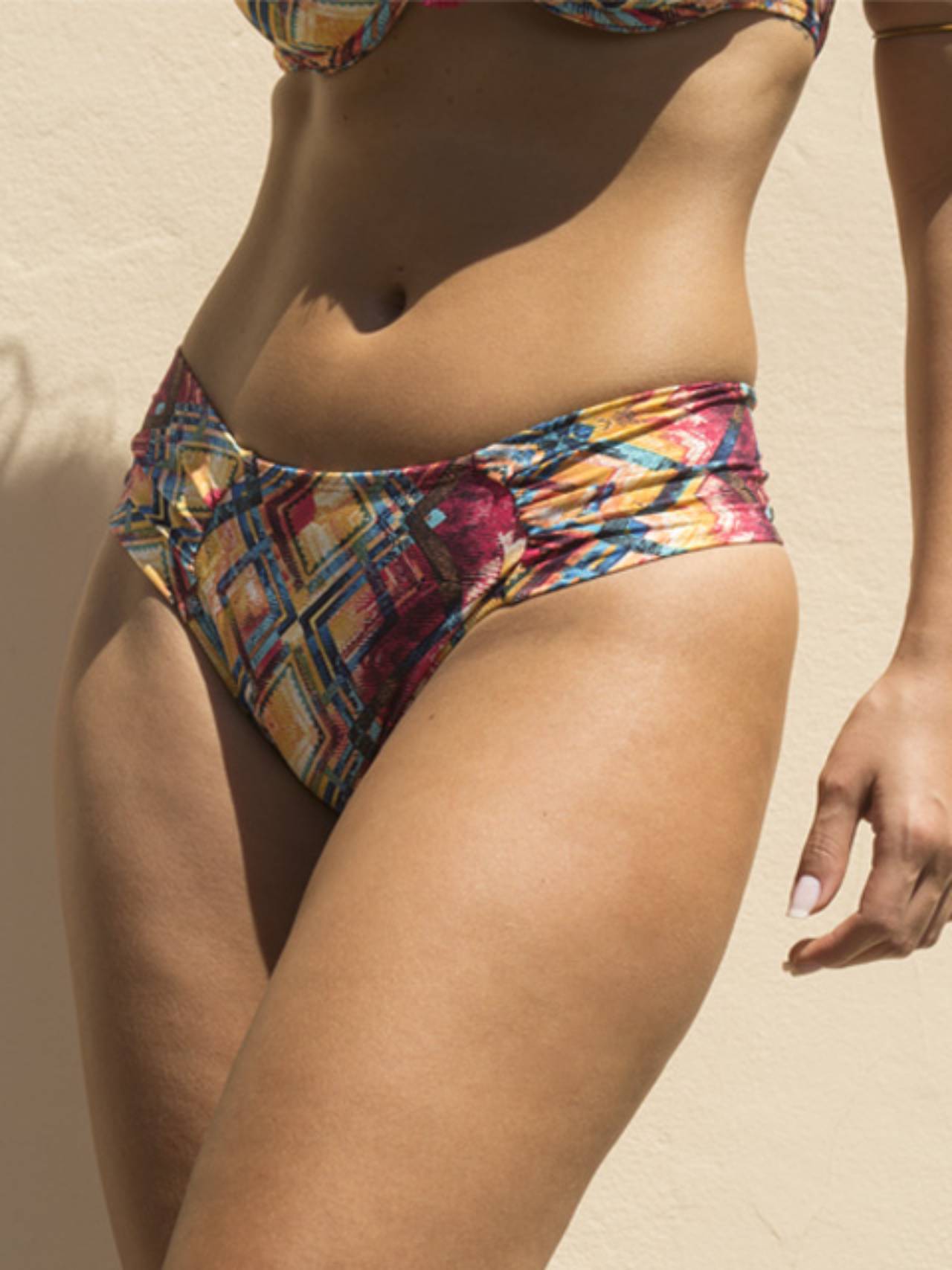 Calcinha de biquíni com lateral franzida, em lycra com forro, modela o corpo e não aperta as laterais. Possui ótimo caimento e estilo.