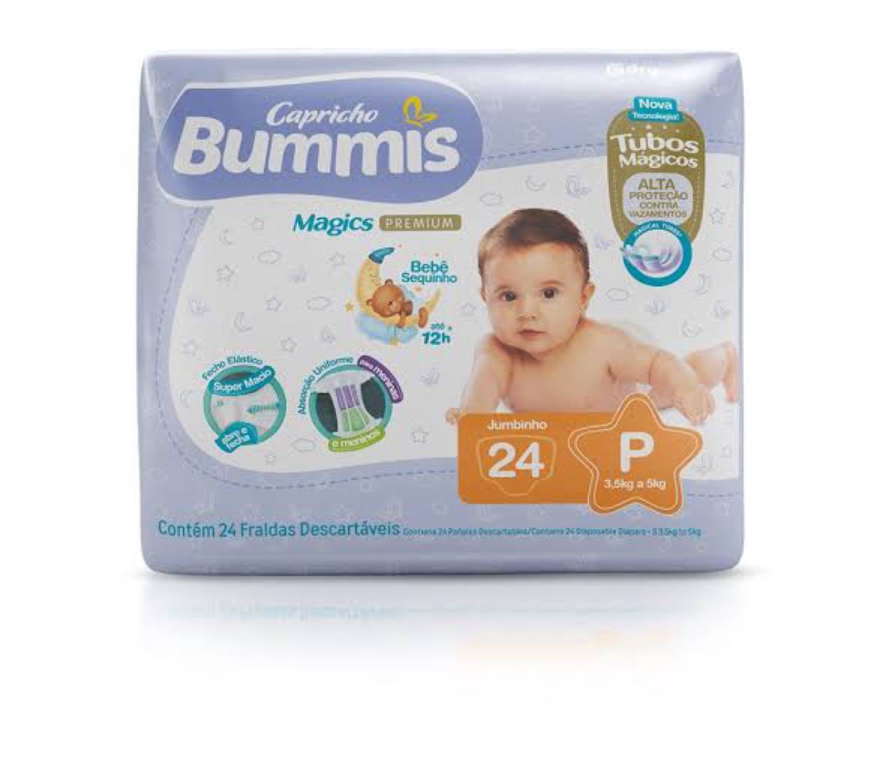 Capricho Bummis tubos mágicos 12h disponível nos pacotes jumbo e mega.