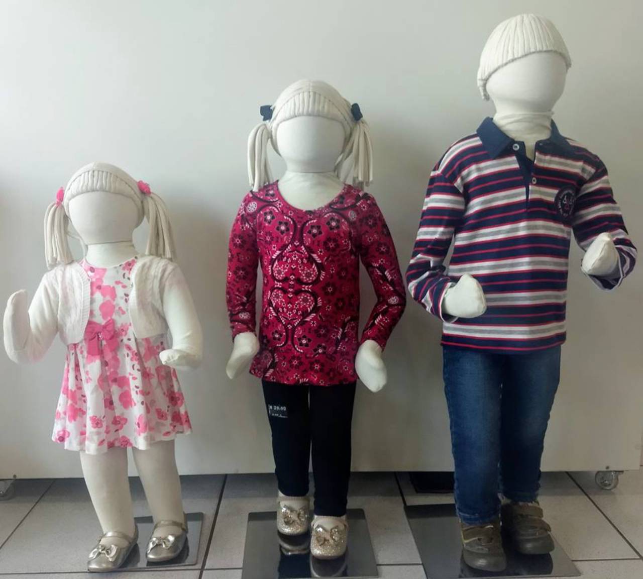 Vestido com body Noruega e bolero de tricô Milon, conjunto de menina Puc e conjunto de menino Topázio.