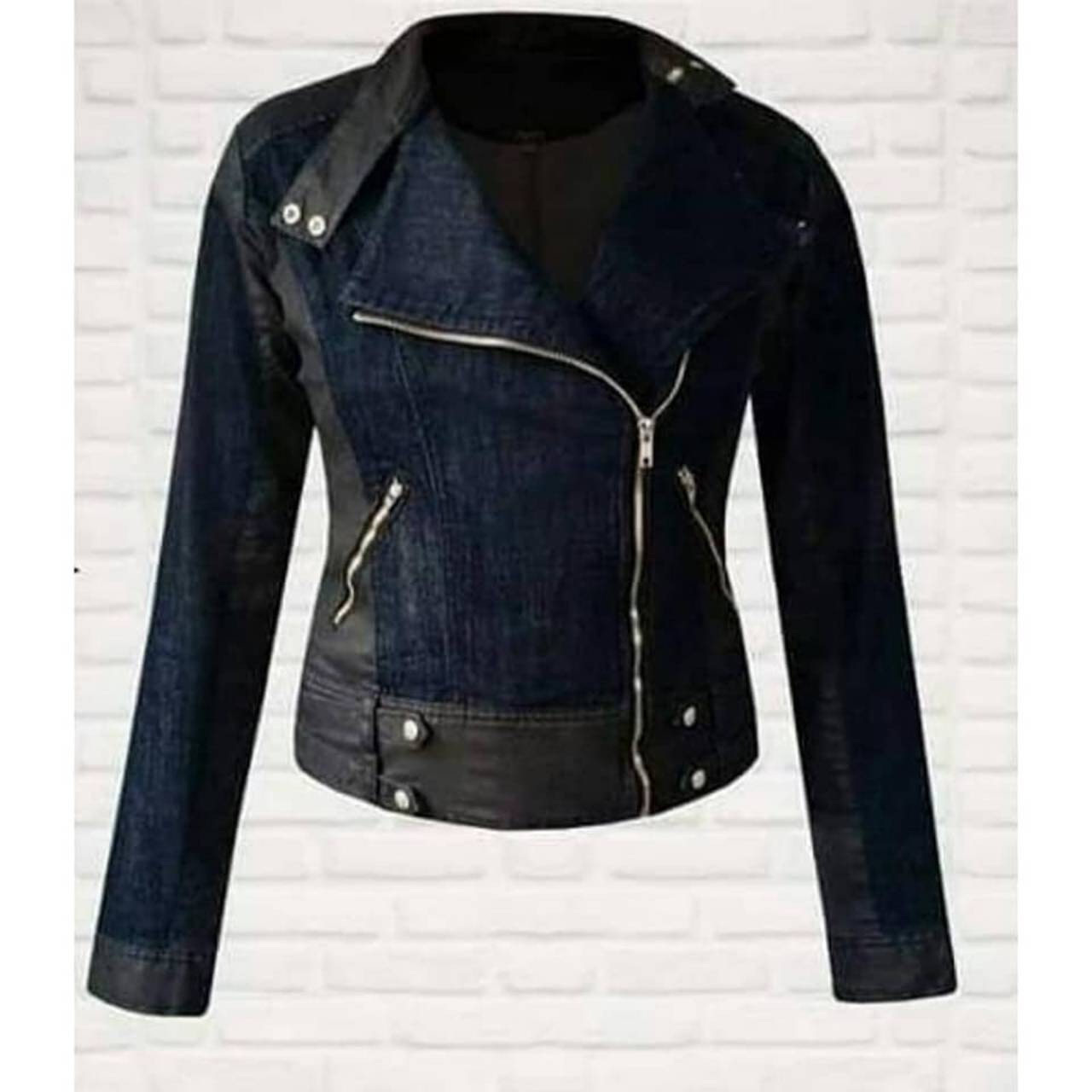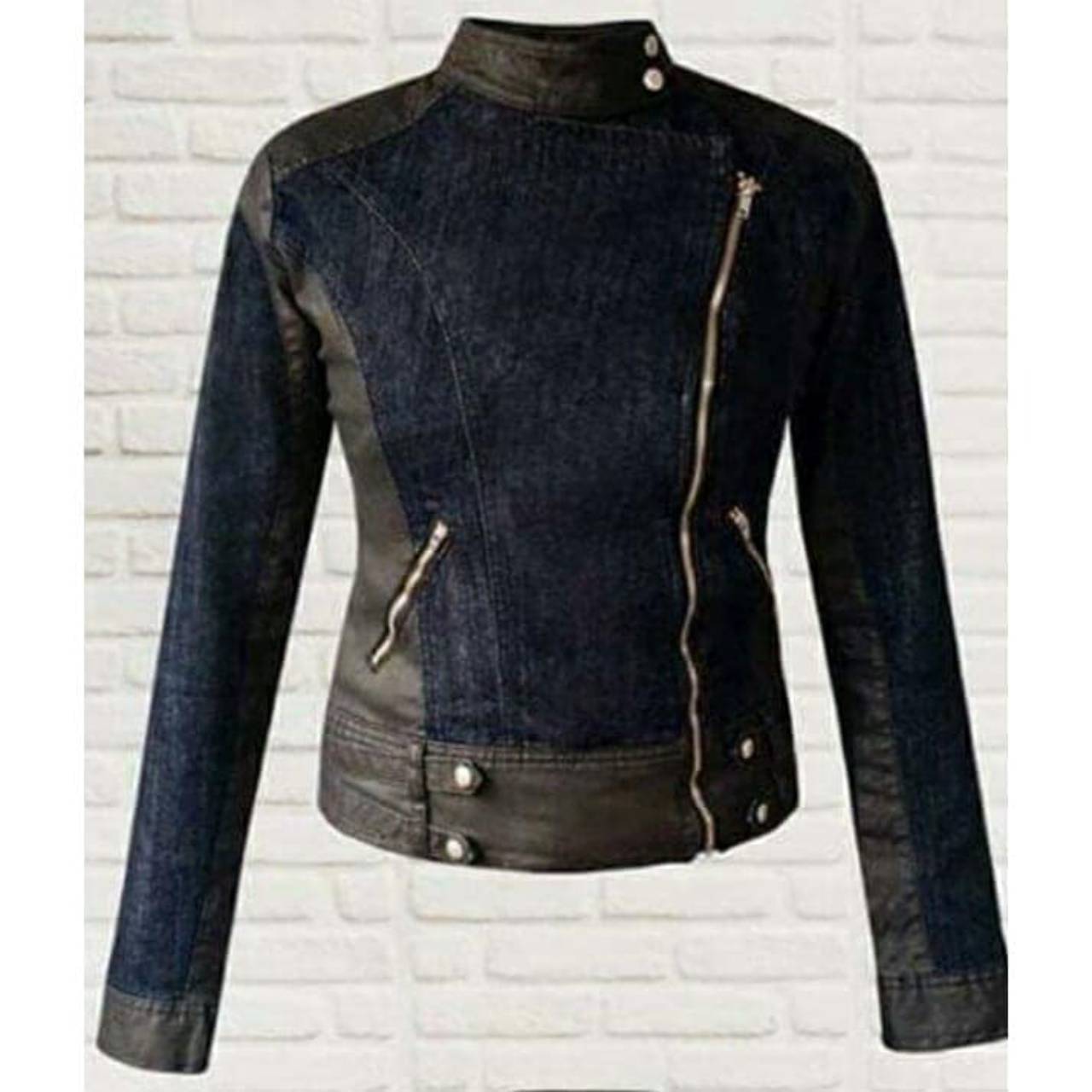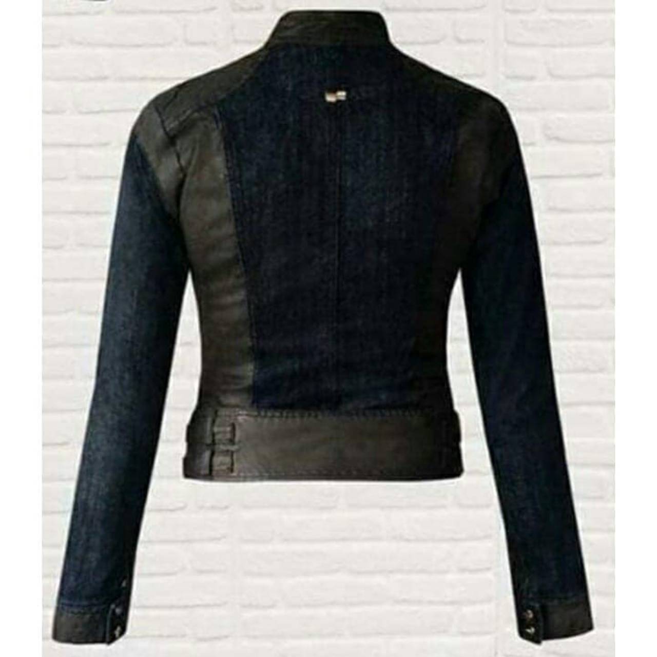 Jaqueta Jeans Lavagem Escura e detalhes em Couro Eco (Disponível nos Tamanhos: 38 e 40)