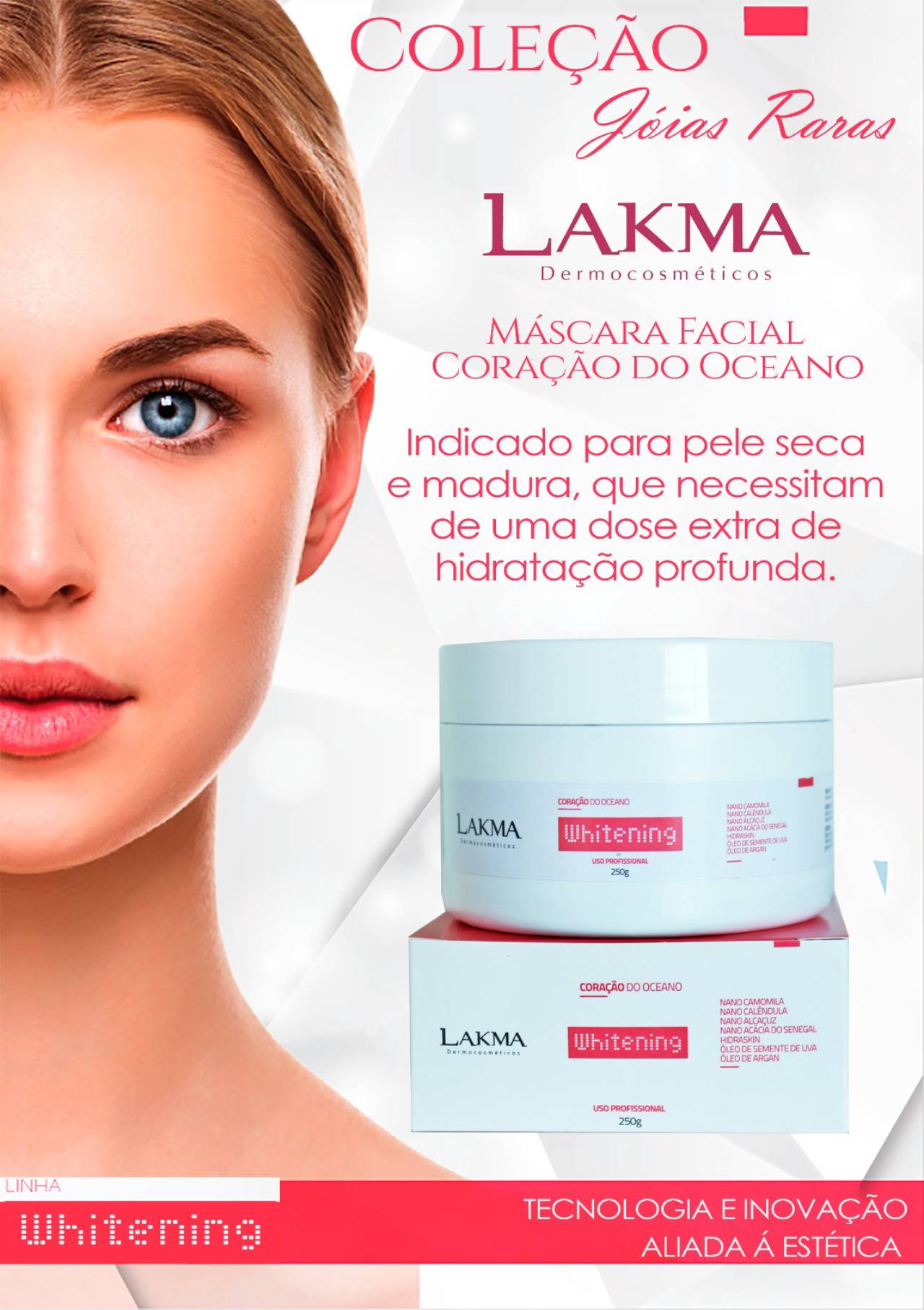 Máscara facial de hidratação profunda, da Coleção Jóias Raras, contém Nano Ácido Hialurônico, Nano Acácia do Senegal, Hidraskin, Óleo de Semente de Uva, Óleo de Argan, Nano Camomila/Alcaçuz/Calêndula