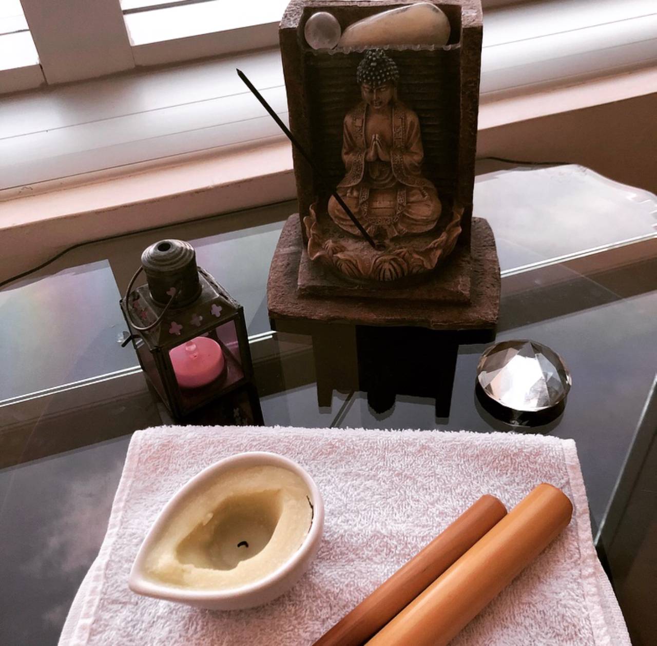 Massagem com velas: conjunto de técnicas associado ao calor produzido pela vela. Relexamento profundo.