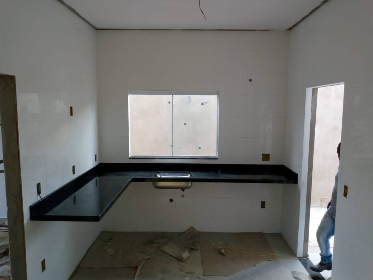 Bancada em L de mármore em ...