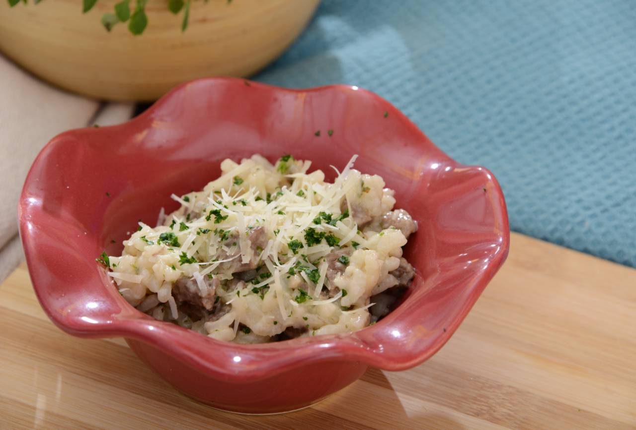 Risoto de filé com queijo meia cura