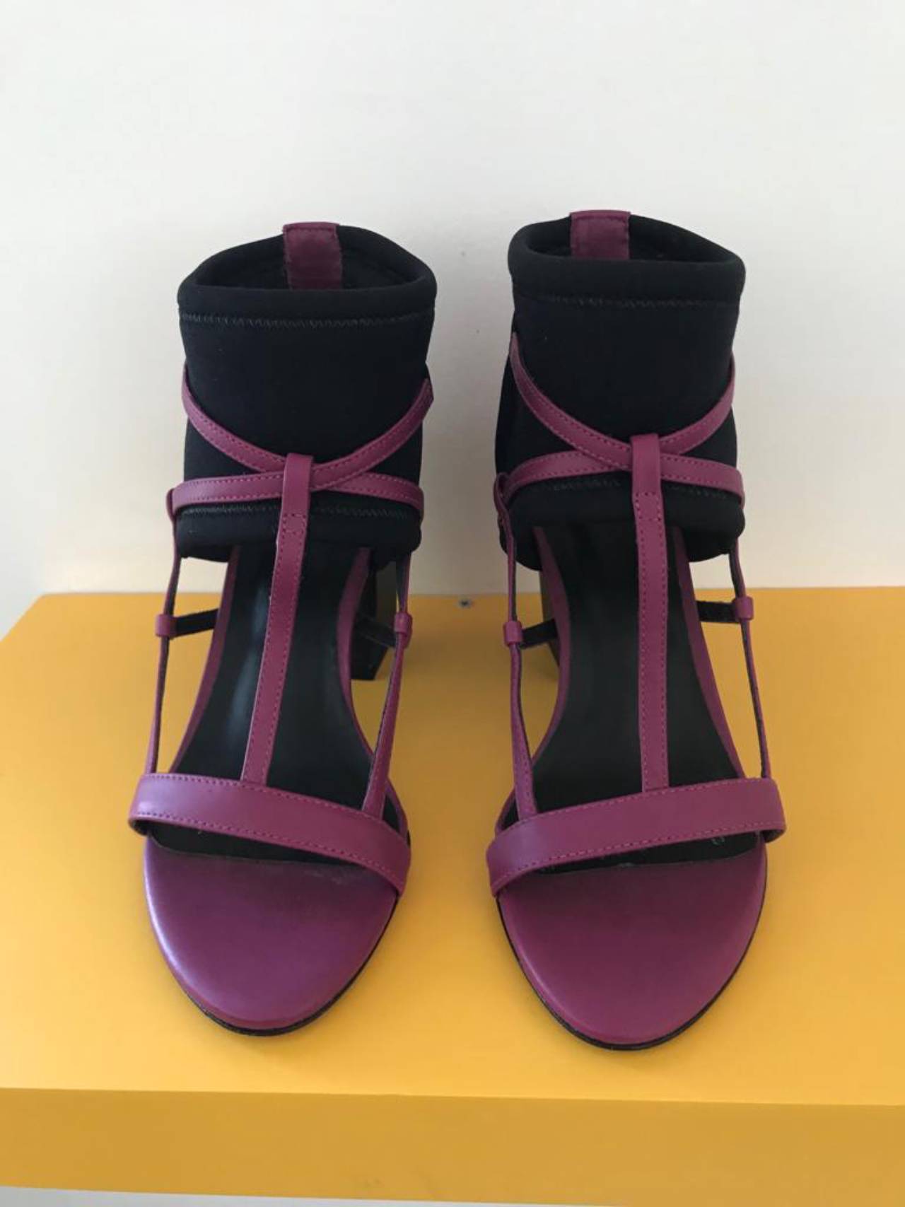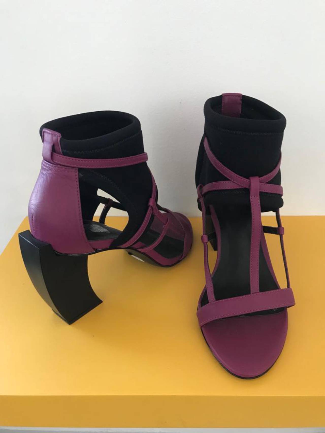 Sandália confeccionada em couro e neoprene.