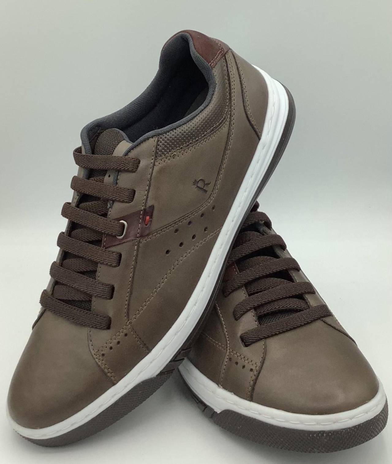 SAPATÊNIS COURO CAFÉ BORDA BORDO NEON