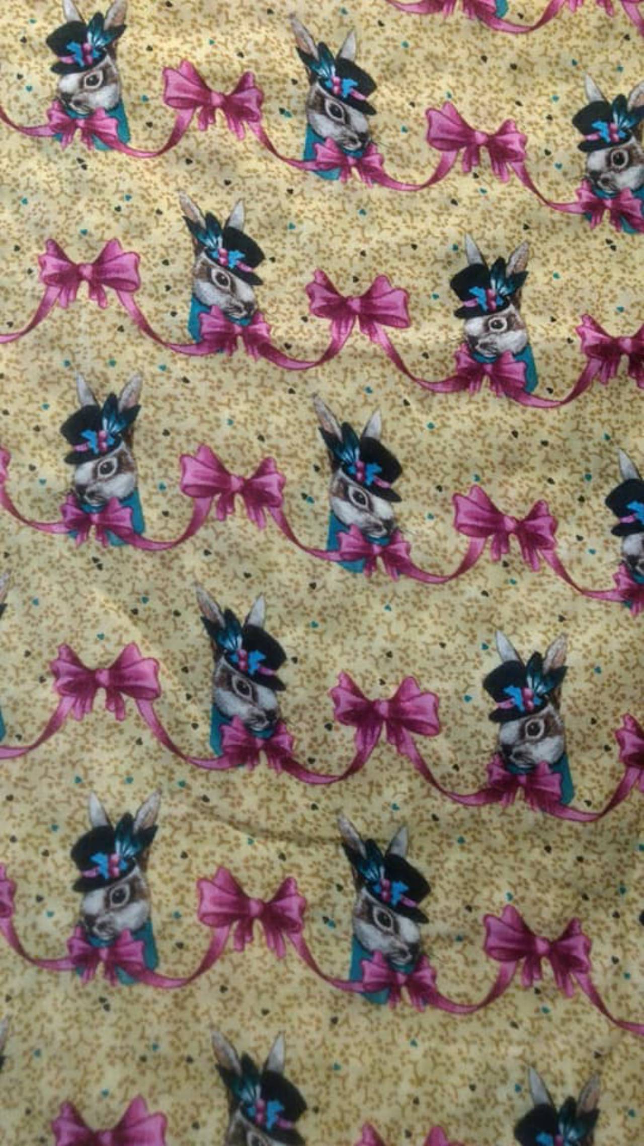 Tecido - Estampa rosa e pre...