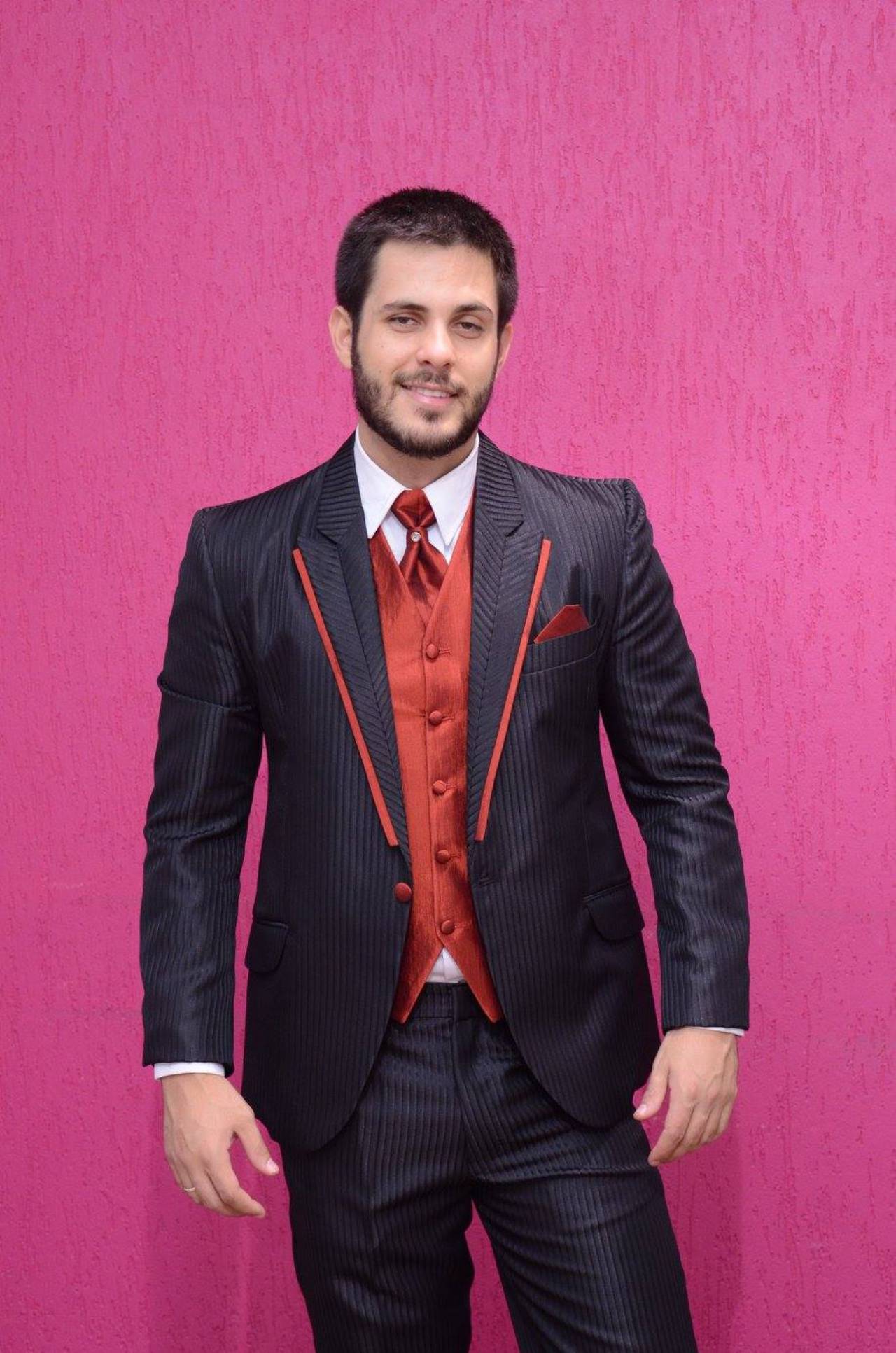 Terno preto com detalhes em vermelho Bauru