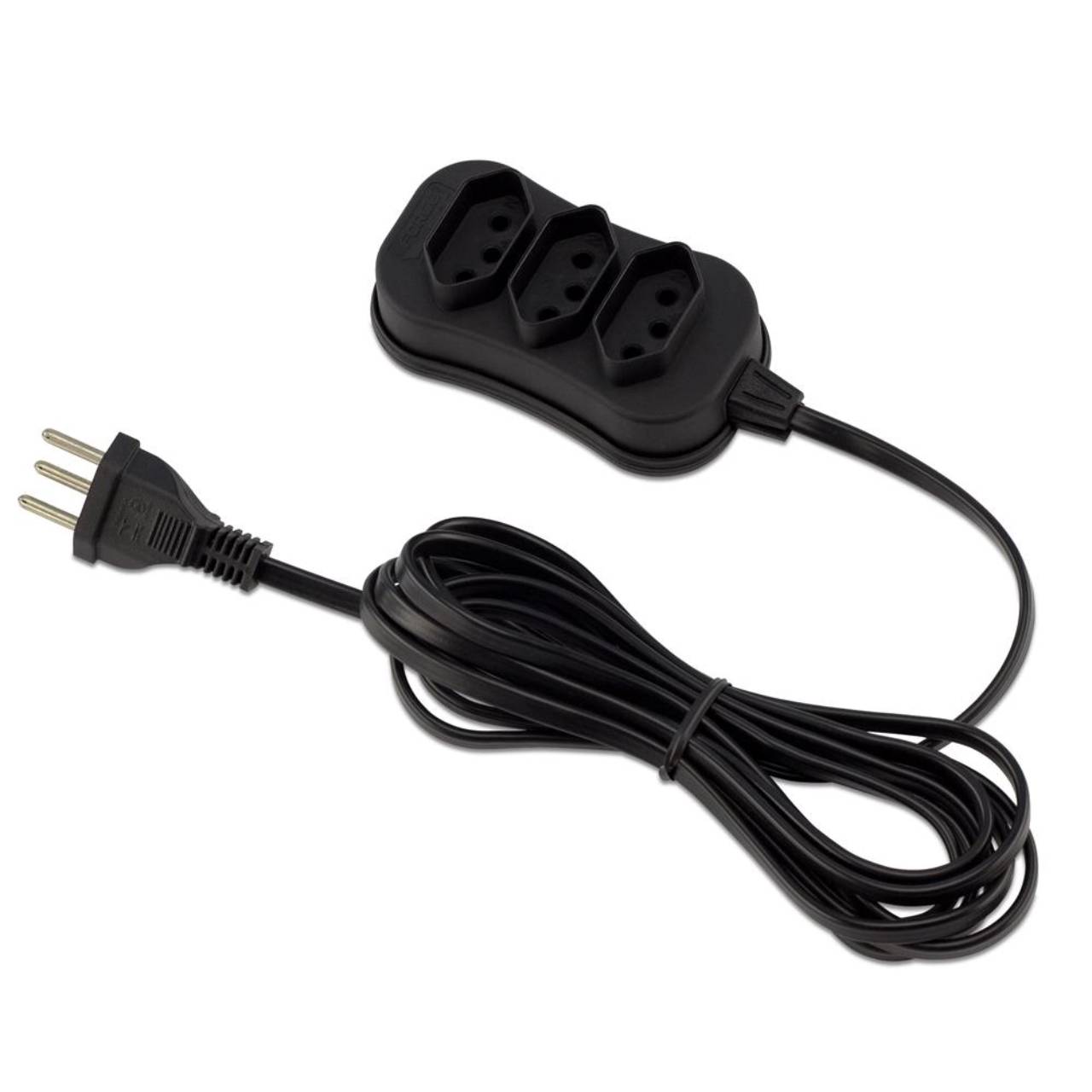 Extensão elétrica na cor preta com 3 metros de comprimento.