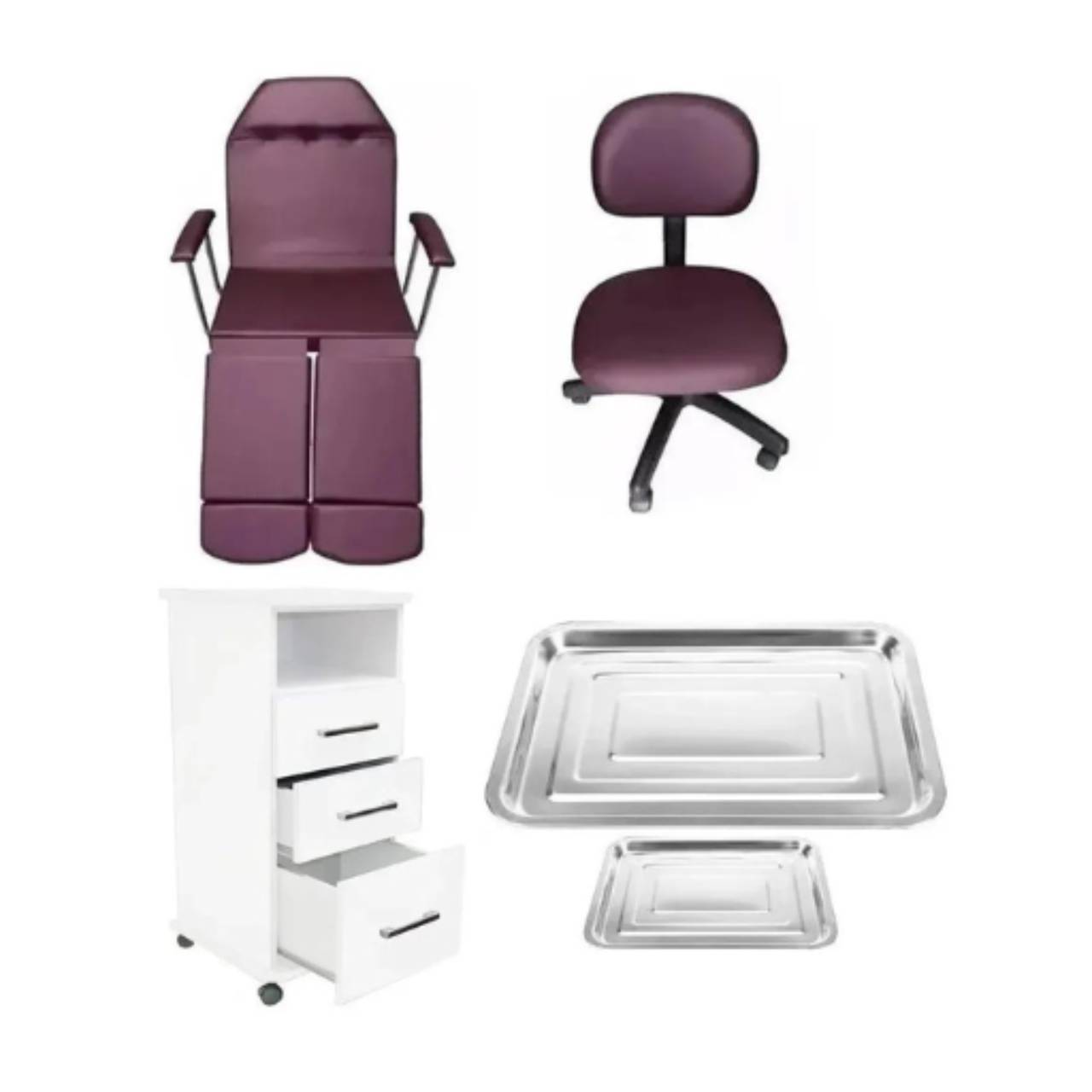 Kit Cadeira para Podologia Vinho: com Mocho, Armário e Brinde – Fiscomed Boituva/SP
