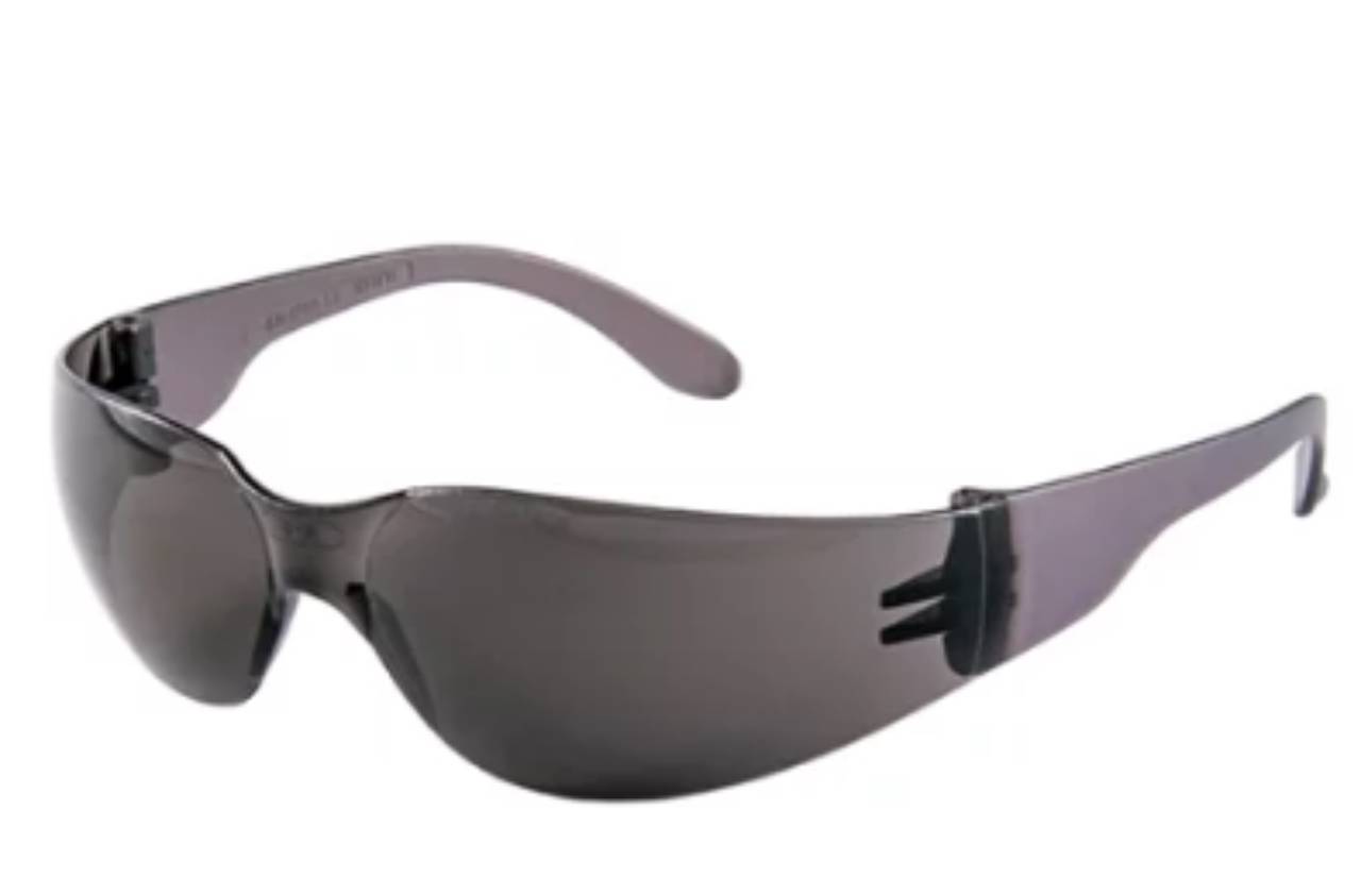 Óculos de segurança constituído de armação e visor em policarbonato altamente resistente, suas hastes são do tipo espátula, seu formato e leveza proporcionam grande conforto ao usuário, lentes com tratamento anti-risco e proteção contra raios UVA e UVB.