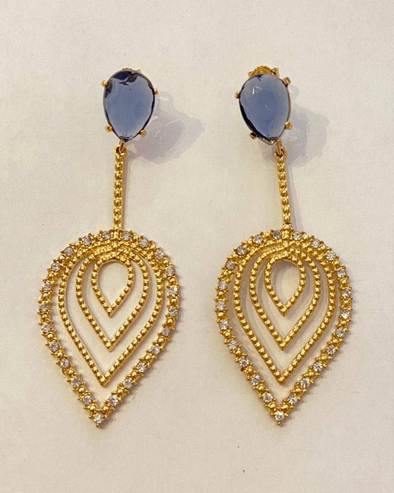 Brinco pedra azul gota semi joia - MyF