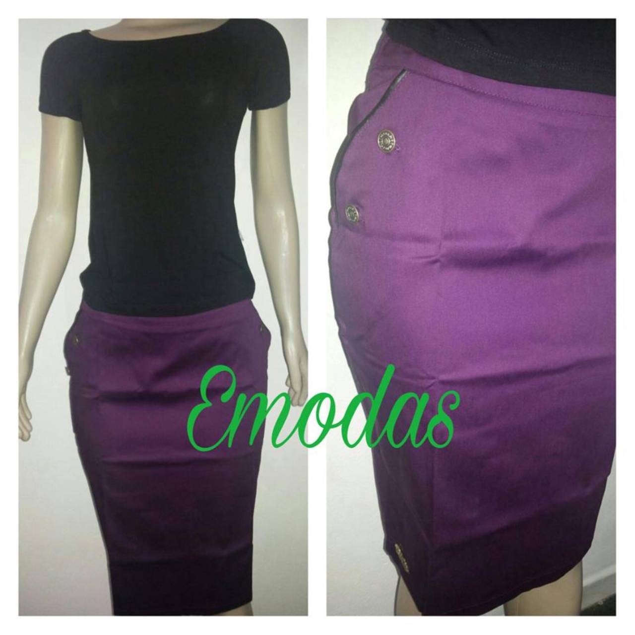 Saia em sarja detalhe courino no bolso