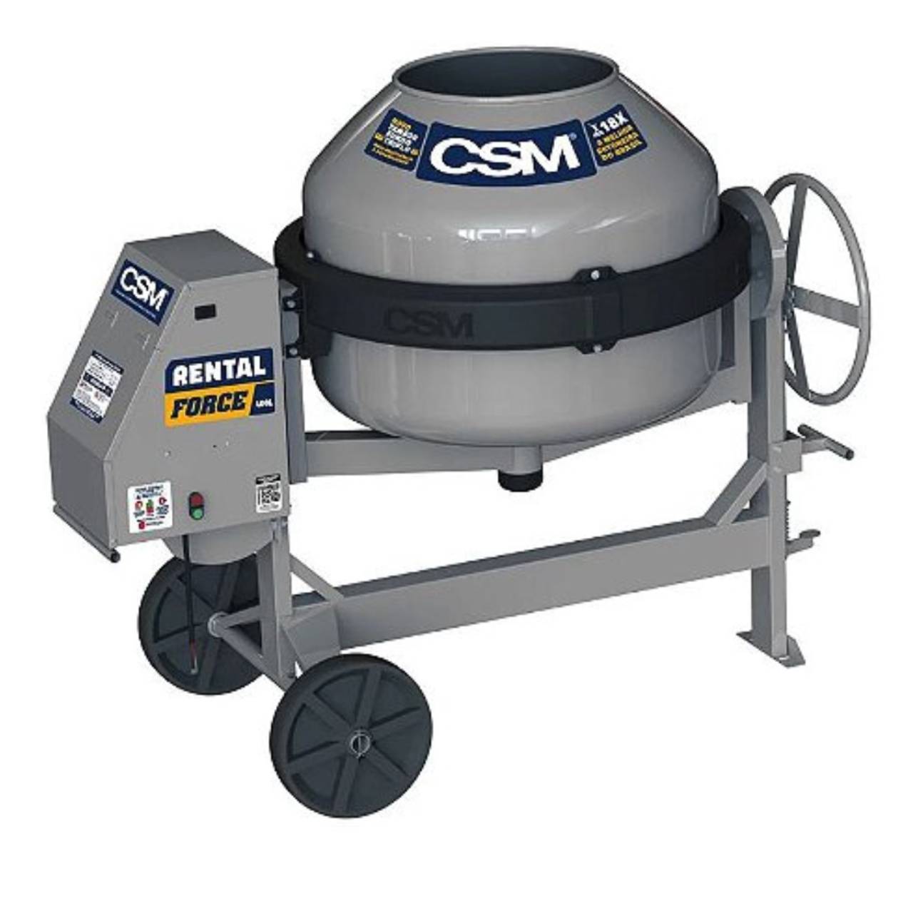 Mobilidade: Rodas reforçadas para facilitar o transporte e o posicionamento da betoneira no canteiro de obras.