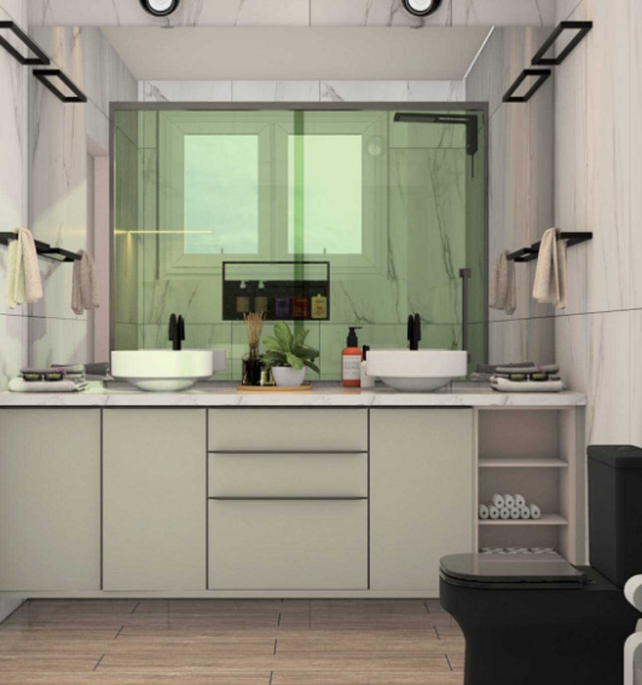 Na Briggs Home Planejados, ao projetar banheiros, analisamos aspectos hidráulicos, de espaço e iluminação. A concepção dos móveis é adaptada às preferências do cliente, incluindo a escolha da cuba e a organização do espaço. Móveis aéreos, uma distribuição eficiente da iluminação e o uso de espelhos são elementos-chave para valorizar e ampliar o ambiente.