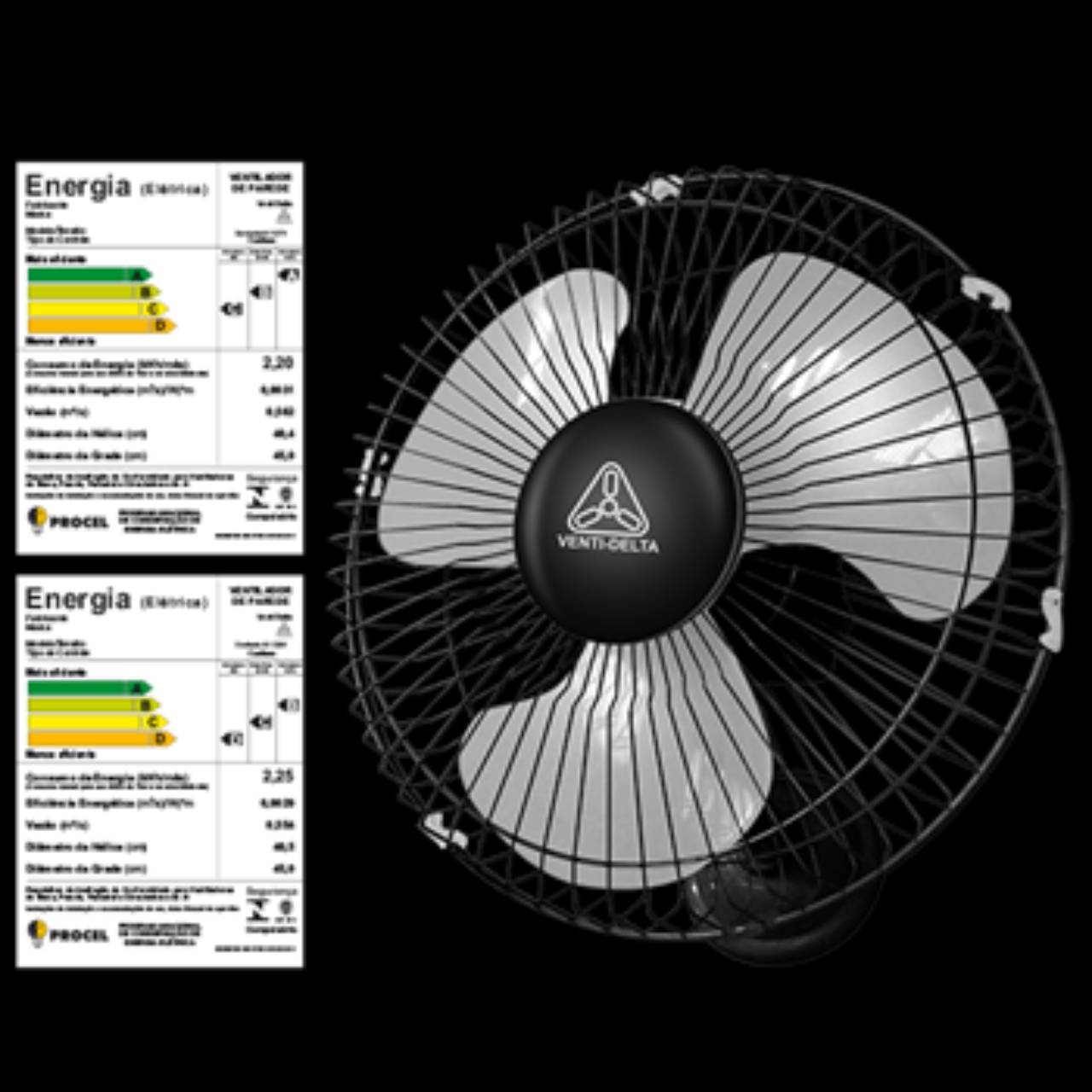 Ventilador disponível em 2 tamanhos, 50cm e 60cm.