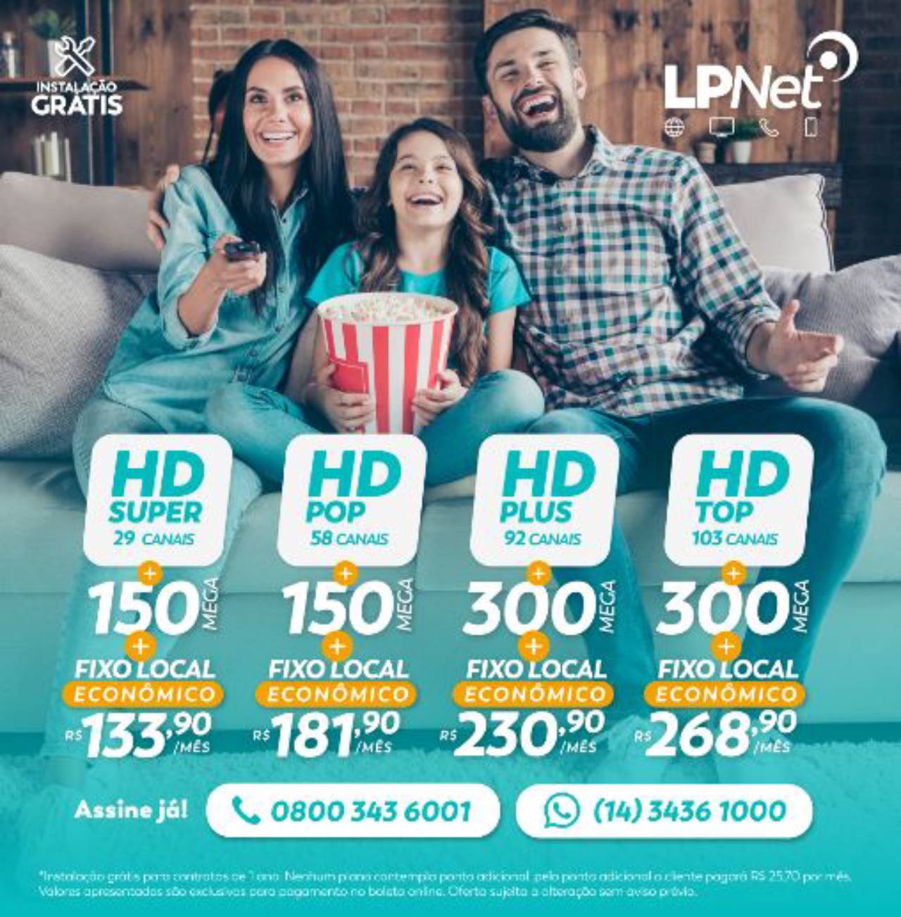 Internet + TV + Telefone Fixo Top da LPNet!