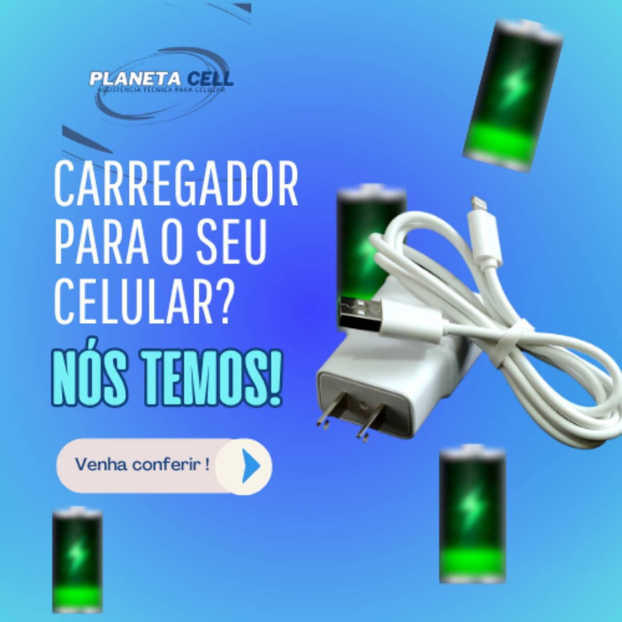 Não comprometa a performance do seu celular com carregadores de baixa qualidade. Entre em contato conosco ou visite nossa loja para encontrar o carregador de celular perfeito para você. Na Planeta Cell, garantimos carregamento rápido e seguro com a melhor qualidade!