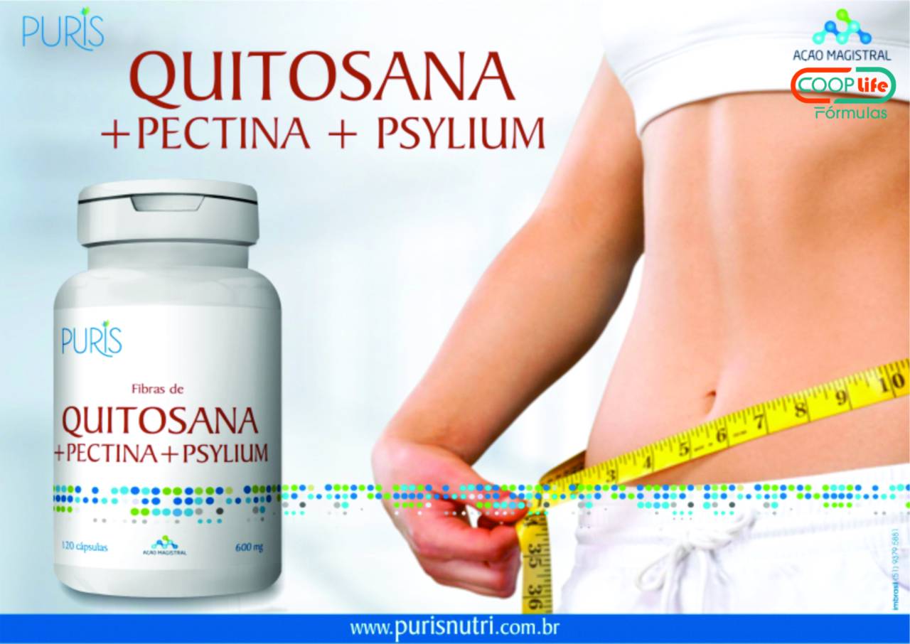 PRODUTO: Fibras de quitosana, pectina e psyllium Registro do produto no Ministério da Saúde (ANVISA): 6.2358.0122.001-5 Descrição: Produto formulado à base de fibras, contendo a quitosana, a pectina e o psyllium. “A quitosana auxilia na redução da absorção de gordura e colesterol. Seu consumo deve estar associado a uma alimentação equilibrada e hábitos de vida saudáveis”. Categoria do produto: Alimentos com alegações de propriedade funcional e ou de saúde (ANVISA). Indicação: fonte de fibras alimentares. Apresentação: Pote de polietileno com 60 e 120 cápsulas gelatinosas de 600mg. Contra Indicação: “Não é recomendado para gestantes, nutrizes (mães que amamentam) e crianças. Pessoas alérgicas a peixes e crustáceos devem evitar o consumo deste produto”. Modo de Uso: 4 cápsulas de 15 a 30 minutos antes das principais refeições (almoço e janta). Recomendações Importantes: “Consumir este produto conforme Recomendação da Ingestão constante na embalagem. Consumir preferencialmente sob orientação de médico ou nutricionista”. “O consumo deste produto deve ser acompanhado da ingestão de líquidos”. Conservar ao abrigo da luz, calor e umidade. Suplementos alimentares, exceto suplementos alimentares com probióticos ou enzimas (regulamentados pela RDC nº 243/2018 e pela IN nº 28/2018) Segue artigo da lei http://portal.anvisa.gov.br/documents/10181/3898888/RDC_243_2018_.pdf/0e39ed31-1da2-4456-8f4a-afb7a6340c15