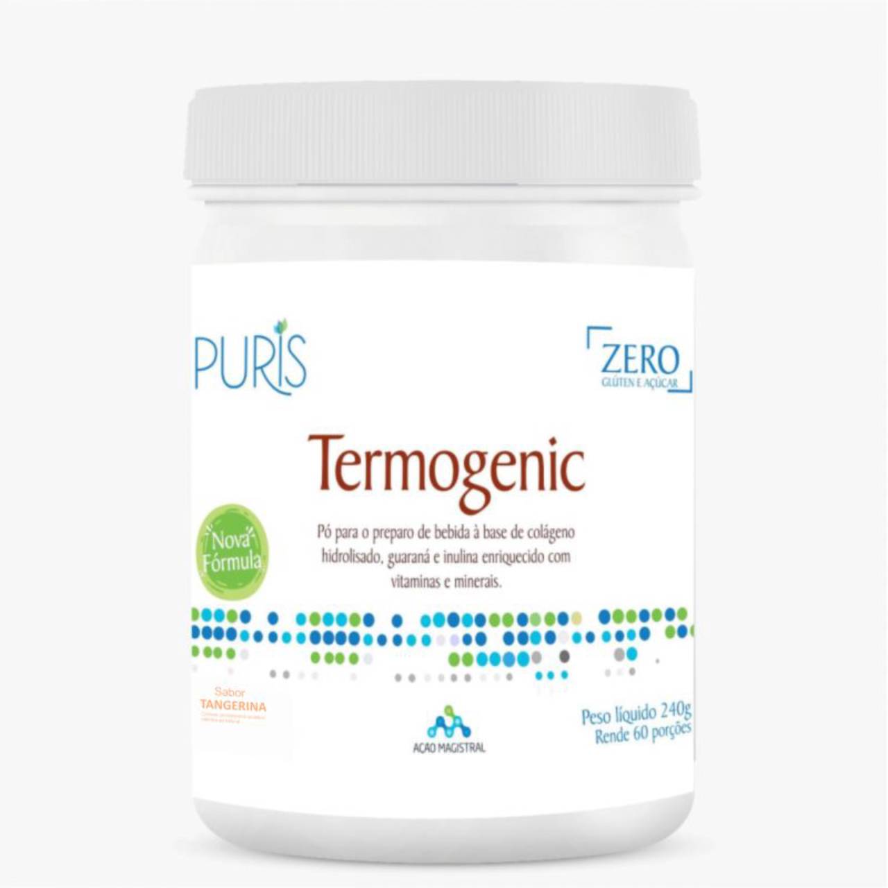 TERMOGENIC PURIS É um suplemento em forma de pó em sachês, para preparo instantâneo de bebida, que contém em sua composição ingredientes para auxiliar em dietas de controle de peso. Ideal para ser consumido pela manhã e antes das atividades físicas. O Termogenic Puris aumenta o metabolismo, forçando a utilização de energia proveniente da degradação das gorduras acumuladas no nosso corpo. O resultado final do uso de Termogenic Puris é um aumento do gasto de energia e de gorduras simultaneamente. Composição: Extrato de Chá Verde, Laranja Amarga, Guaraná, Manga Selvagem, Niacina (vit.B3), Cromo Quelado (GTF), Inulina, Aroma Idêntico ao natural de Frutas Vermelhas, Corante Natural Carmim, Acidulante Ácido Cítrico, Antioxidante Ácido Ascórbico, Edulcorante Artificial Sucralose e Xilitol. Diferenciais: Definição da musculatura, Torna a pele menos oleosa e com mais tonicidade, Aumenta o consumo de gordura como fonte energética, Não causa pico insulínico ,Não contem Glúten e nem Lactose, Auxilia na redução do LDL colesterol Posologia: Tomar 1 sachê diluído em água 5 minutos antes do almoço ou antes do café. Tomar 1 sachê diluído em água 15 a 30 minutos antes das atividades físicas. Indicações: Para aumentar a queima calórica, diminuir tecido adiposo, definir musculatura (aumento de massa magra), controlar o apetite e auxiliar na redução de peso. Atenção: Gestantes, nutrizes e crianças até 15 (quinze) anos somente devem consumir este produto sob orientação de nutricionista ou médico. Descrição: Chá verde – contem 22% de cafeína e 44% de epigalocatequinas, atuando na queima da gordura e na proteção antioxidante das células. Manga selvagem – saciogênico que reduz a absorção de gordura e diminui a adipogênese. Citrus aurantius – tem efeito estimulante/acelerador do metabolismo devido a sinefrina. Guaraná – tem 22% de cafeína, estimula o peristaltismo e a queima de gorduras. Cromo GTF – impede o pico insulínico, devido ao aumento da necessidade de carboidrato para promover o aumento do giro do Ciclo de Krebs (produção de energia) e consequente diminuição do estoque de gorduras. Inulina – fibra solúvel que dá força para o inte Suplementos alimentares, exceto suplementos alimentares com probióticos ou enzimas (regulamentados pela RDC nº 243/2018 e pela IN nº 28/2018) Segue artigo da lei http://portal.anvisa.gov.br/documents/10181/3898888/RDC_243_2018_.pdf/0e39ed31-1da2-4456-8f4a-afb7a6340c15