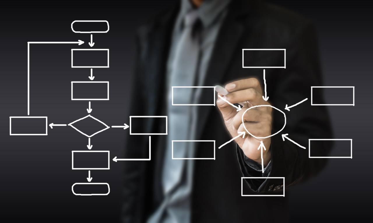 Desenho e redesenho de diagrama, mapa e modelo de processo