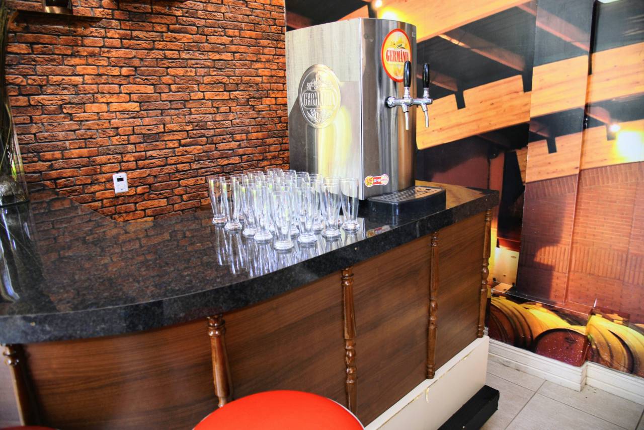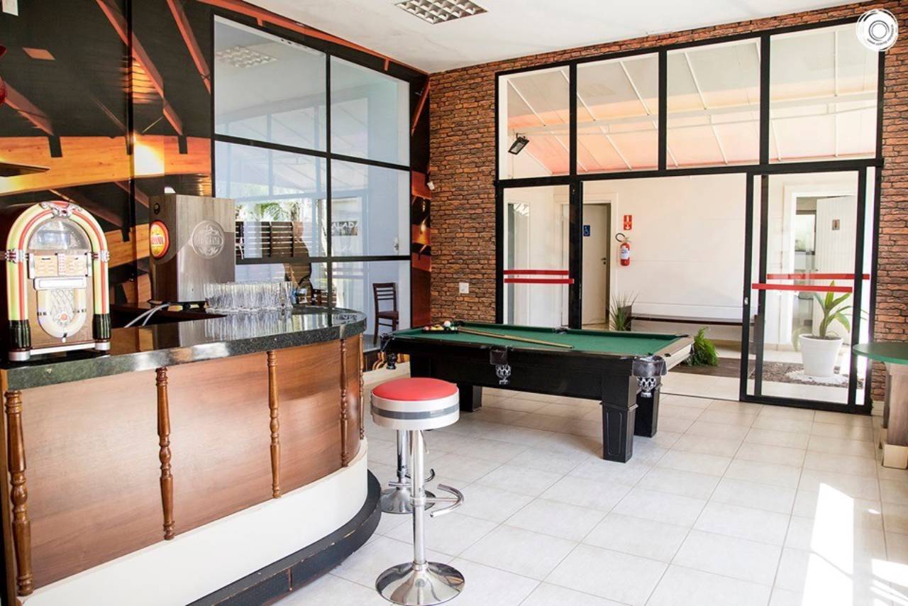 A sala dos pais é um espaço pensado para os adultos, sempre com um Rock classico rolando na nossa Jukebox, mesa de sinuca e cartas. Conta também com uma televisão e sofá. Você poderá contratar barman ou chopp para servir no bar.