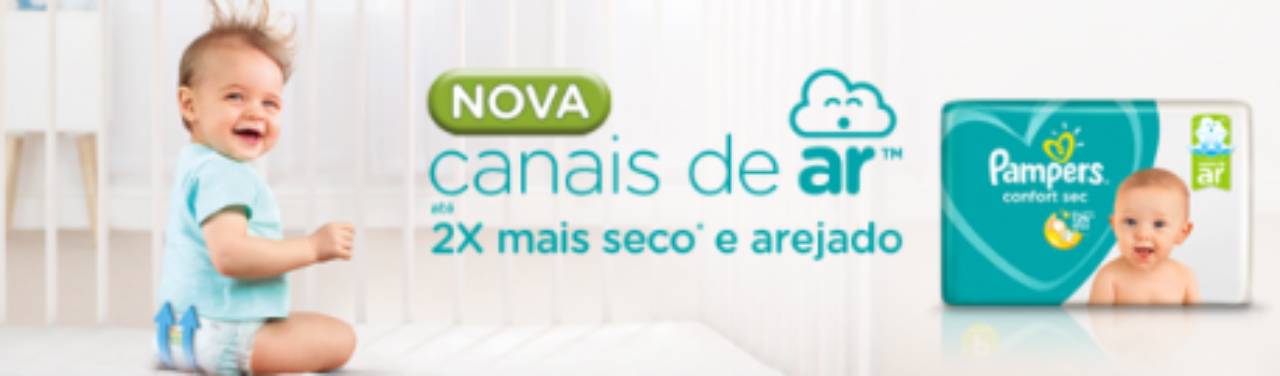 A Pampers confort Sec conta com canais de ar que permitem que o ar circule livre-mente dentro da fralda, evitando que a pele do bebê fique abafada, e sim arejada e sequinha durante toda a noite.