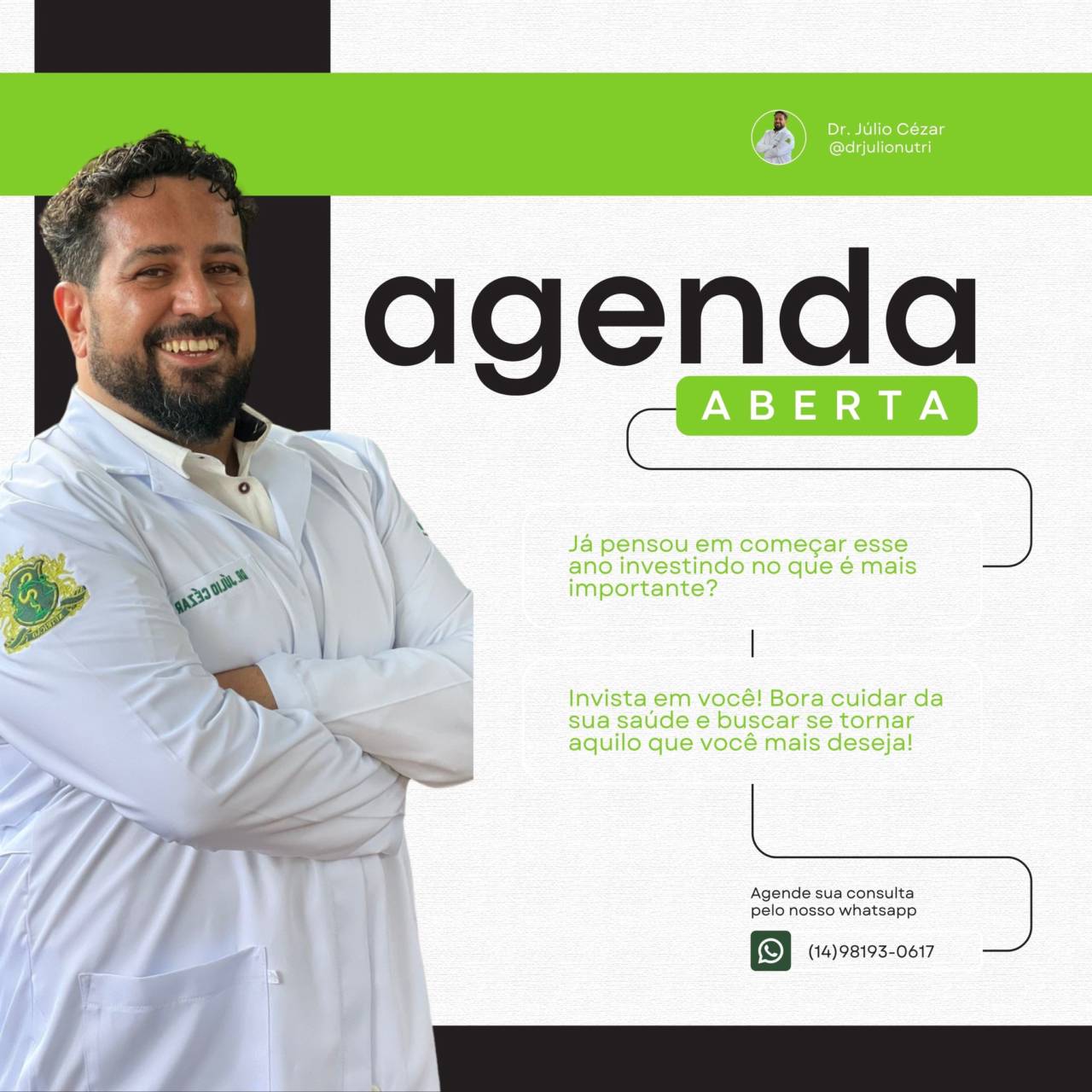 Se você está procurando orientação especializada e suporte personalizado para alcançar seus objetivos de saúde alimentar, estou aqui para ajudar. Agende sua consulta hoje mesmo e dê o primeiro passo em direção a uma vida mais saudável e equilibrada. Estou ansioso para fazer parte de sua jornada nutricional!