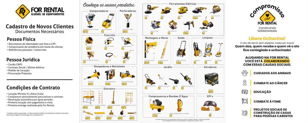 Conte com a For Rental Aluguel de Equipamentos para garantir eficiência, segurança e economia em seus projetos, do pequeno reparo à grande obra.