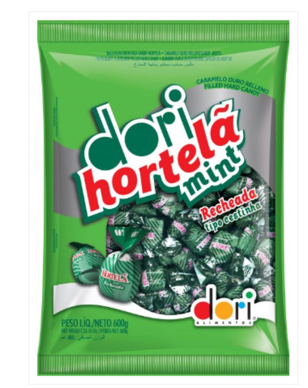 Bala dura recheada sabor hortelã. Deliciosa opção para deixar dias mais doces ou decorar mesas de aniversário ou compor lembrancinhas. Pacote de 600g com aproximadamente 120 unidades.