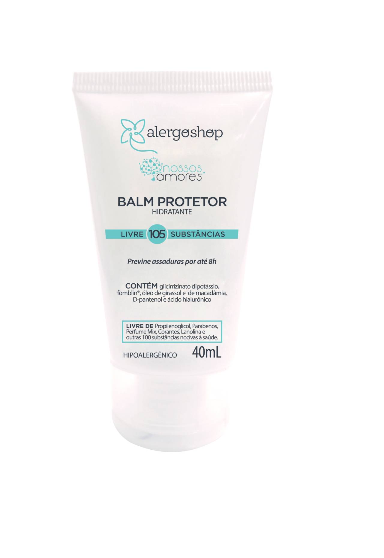 BALM HIDRATANTE . LIVRE DE 105 SUBSTÂNCIAS ALERGÊNICAS E NOCIVAS. 40ML. VEGANO, CRUELTY FREE. Previne assaduras e protege a pele contra agressões causadas pelo uso das fraldas. Testes comprovam a prevenção de assaduras por até 8 horas, além do aumento na hidratação em até 42,9%.