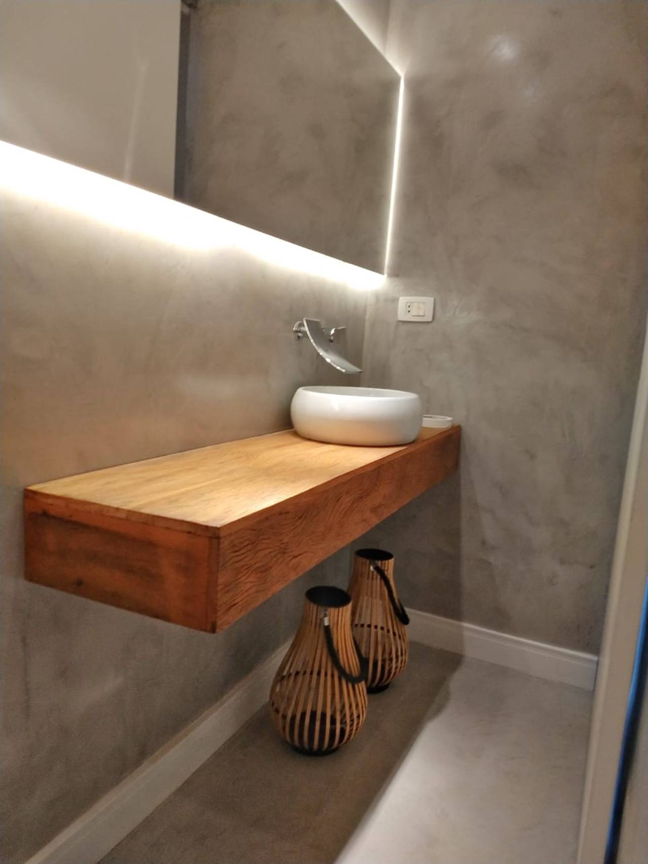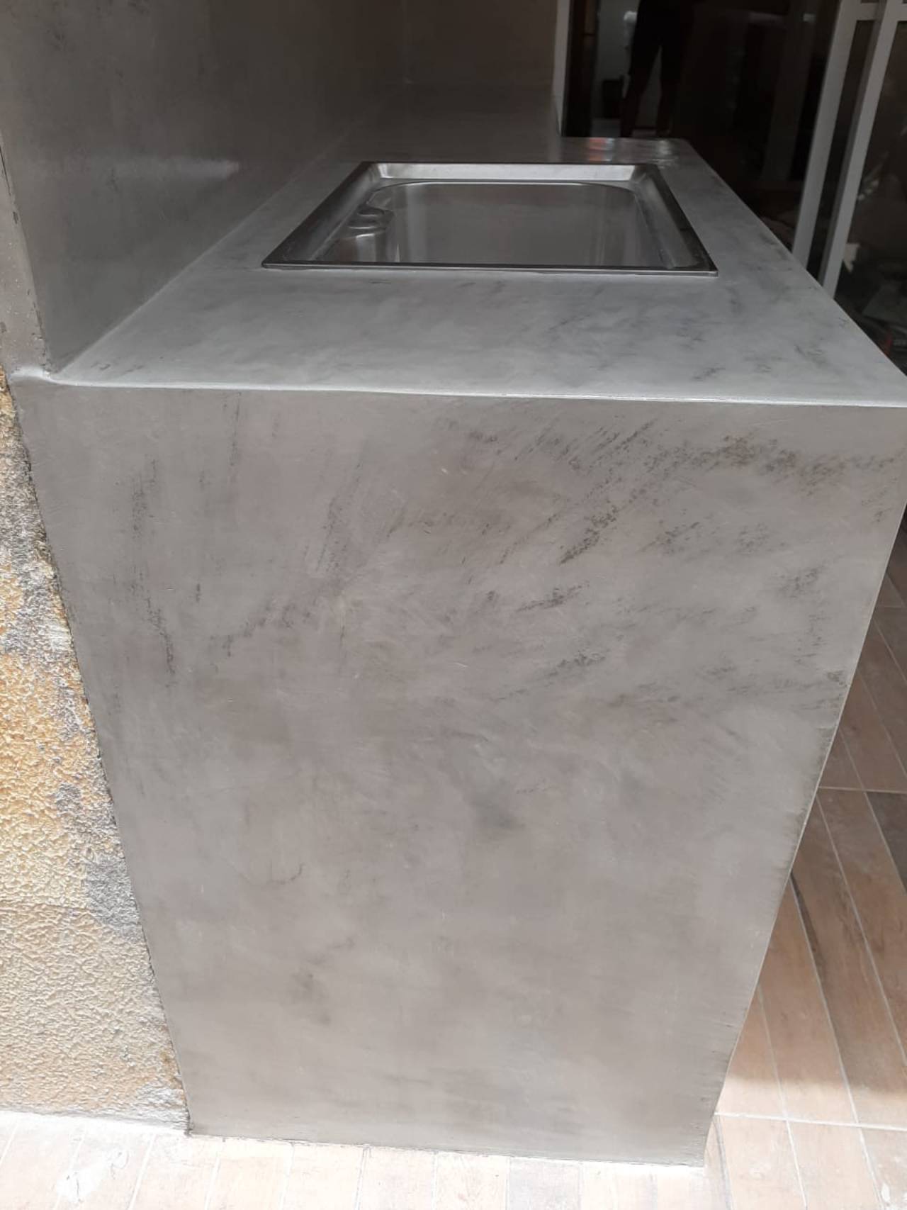 Sua aplicação é feita de forma manual, camada por camada e sua espessura final varia de 2 a 3 mm em parede e de 3 a 5 mm no piso. O acabamento final pode ser realizado com uma resina à base d'água fosca ideal para Paredes, já para aplicação em pisos é fundamental a utilização de uma resina bicomponente á base de solvente (brilhante acetinado), com o objetivo de prolongar a vida útil do substrato e evitar problemas de impermeabilização.