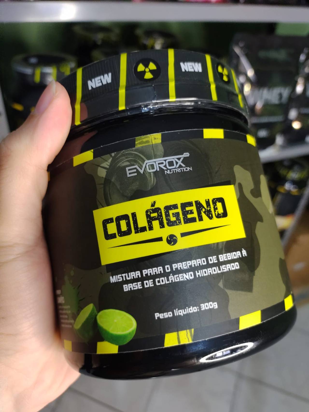 O Colágeno tem efeito regenerativo em ligamentos e articulações e associado ao Betacaroteno e Vitamina C ajuda a neutralizar os radicais livres, auxilia no bronzeamento, previne rugas e retarda o envelhecimento da pele. O Colágeno Evorox tem uma fórmula super concentrada, possuindo uma porção de 8,4g ( 2 dosadores). Disponível em potes de 300g nos sabores de Morango ou Limão