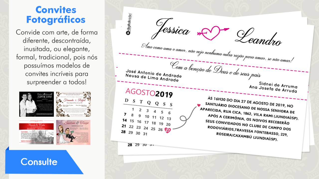 Convites Fotográficos Convide com arte, de forma diferente, descontraída, inusitada, ou elegante, forma, tradicional, pois nós possuímos modelos de convites incríveis para surpreender a todos!