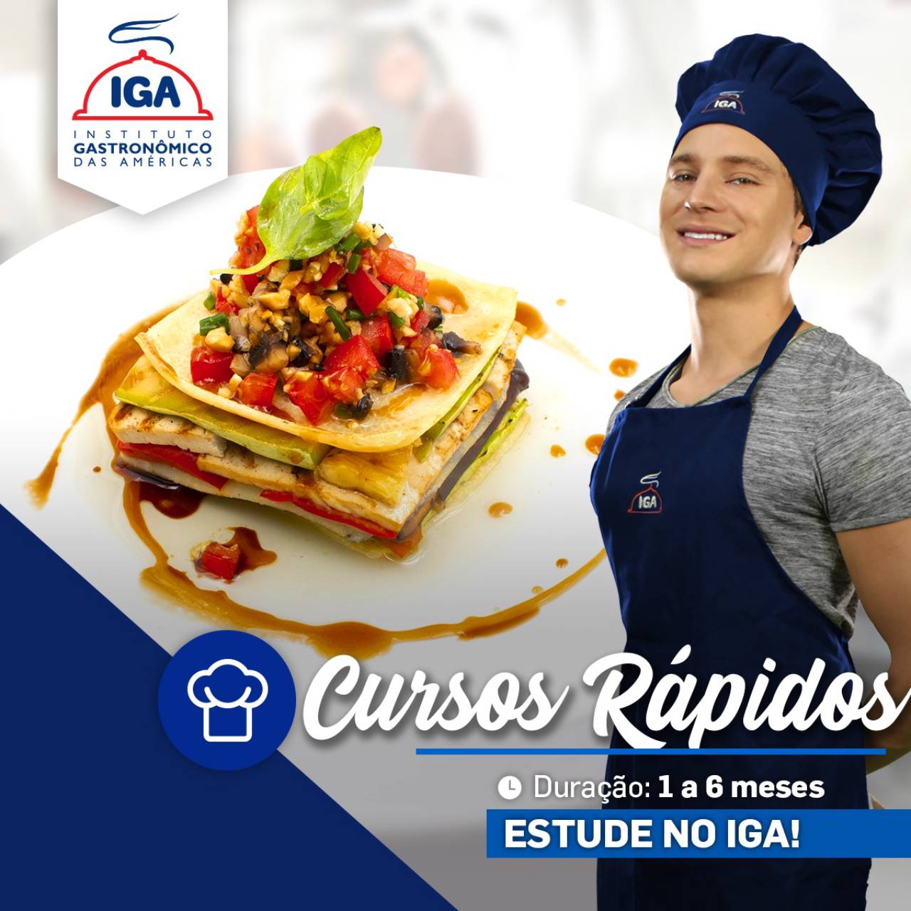 O IGA oferece vários cursos rápidos de 1 a 6 meses. Voltado para práticas de receitas quentes, frias, salgadas e doces.