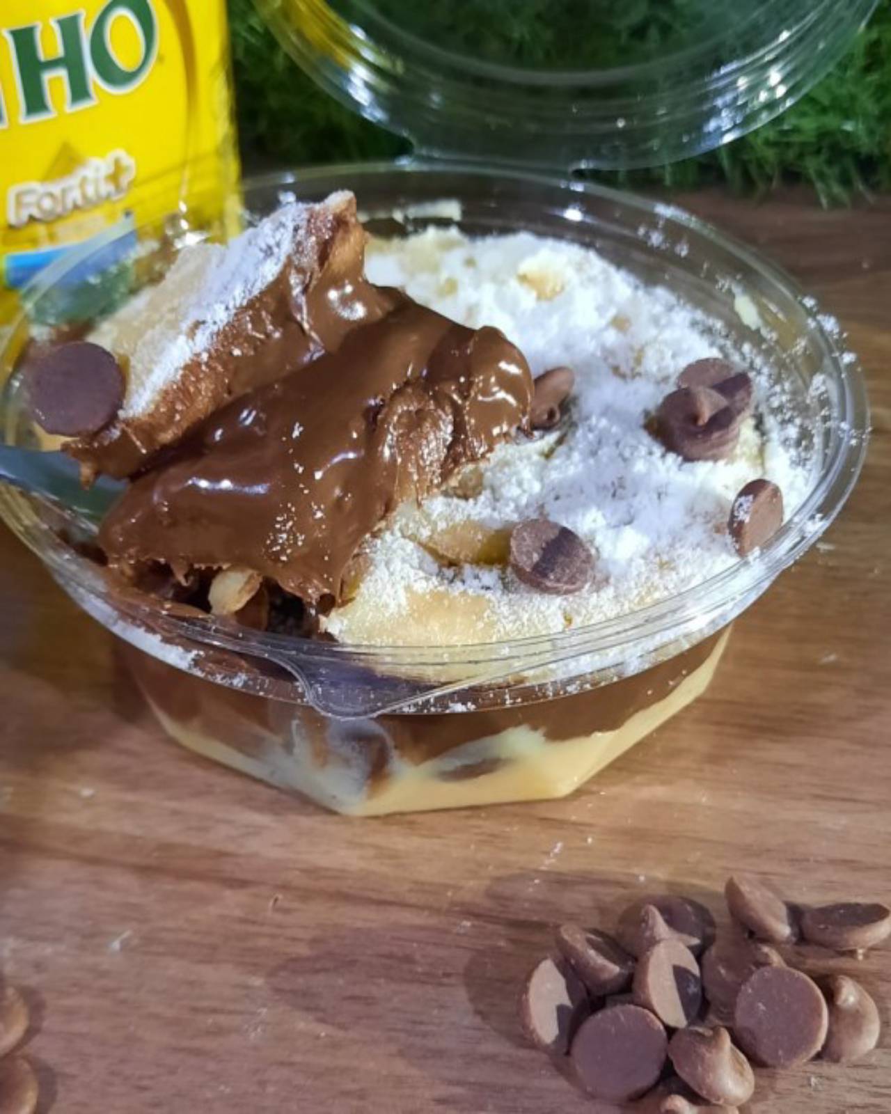 Duas camadas de creme ninho, e no meio muuiitaa nutella, 250 ML.