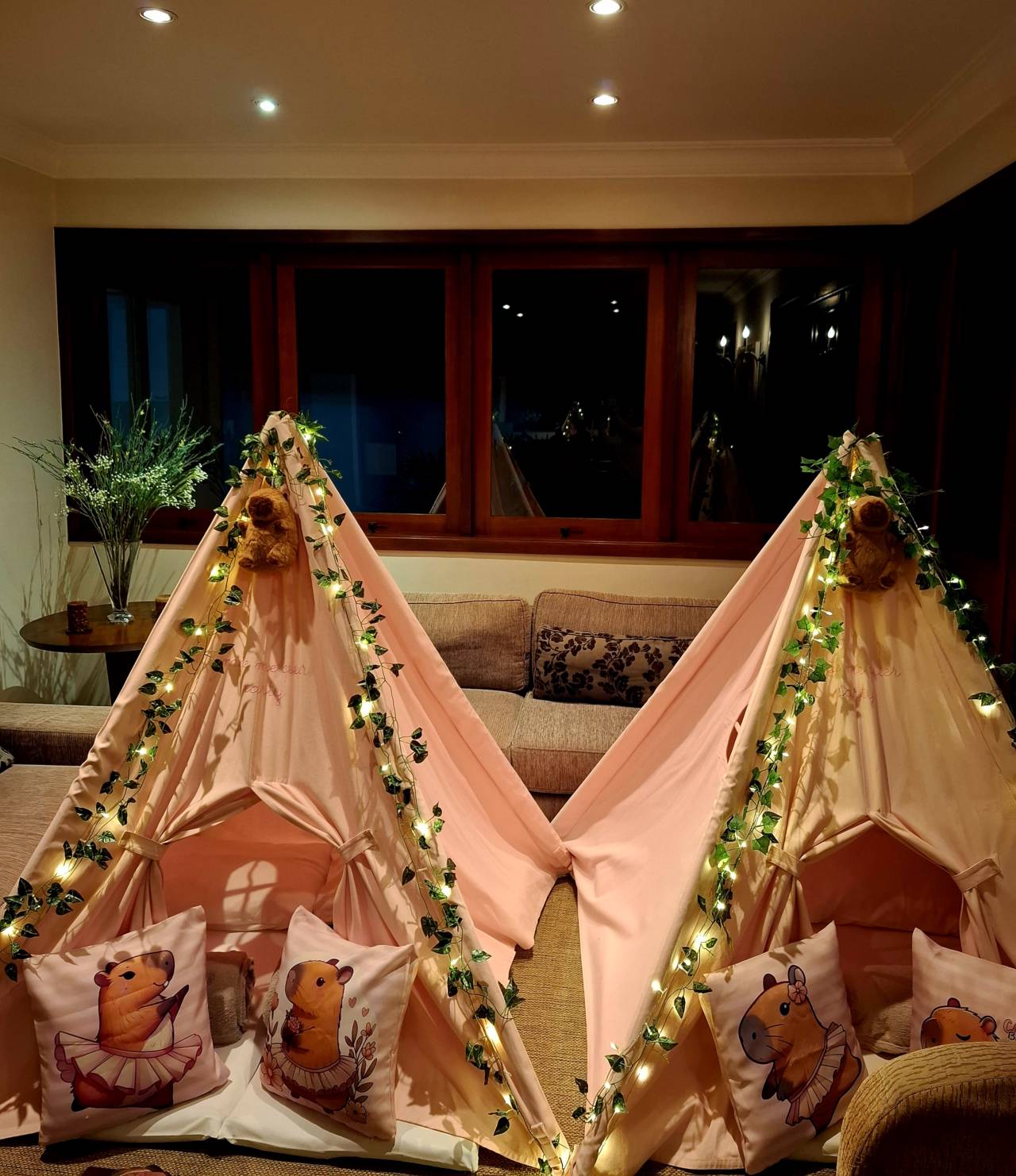 Festa do Pijama com cabanas - Tema Capivara