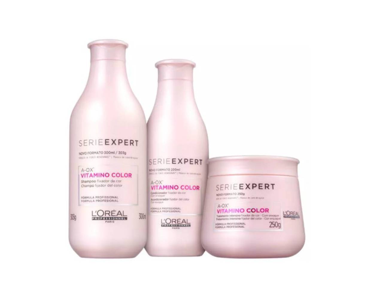 Kit de tratamento para cabelos coloridos. Kit L'Oréal Professionnel Vitamino Color A-OX Tratamento hidrata, fortifica e protege a cor para evitar seu desbotamento.
