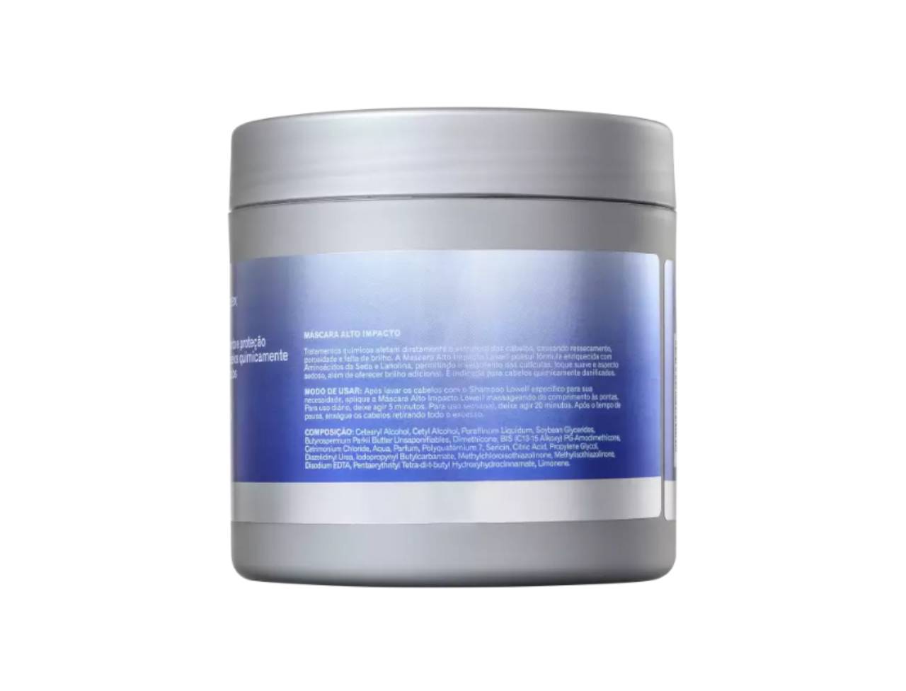 Máscara de tratamento para cabelos que foram danificados pela química, em tamanho profissional. A Lowell Máscara Alto Impacto hidrata e restaura as fibras capilares que sofreram coloração, descoloração, relaxamento ou permanente.