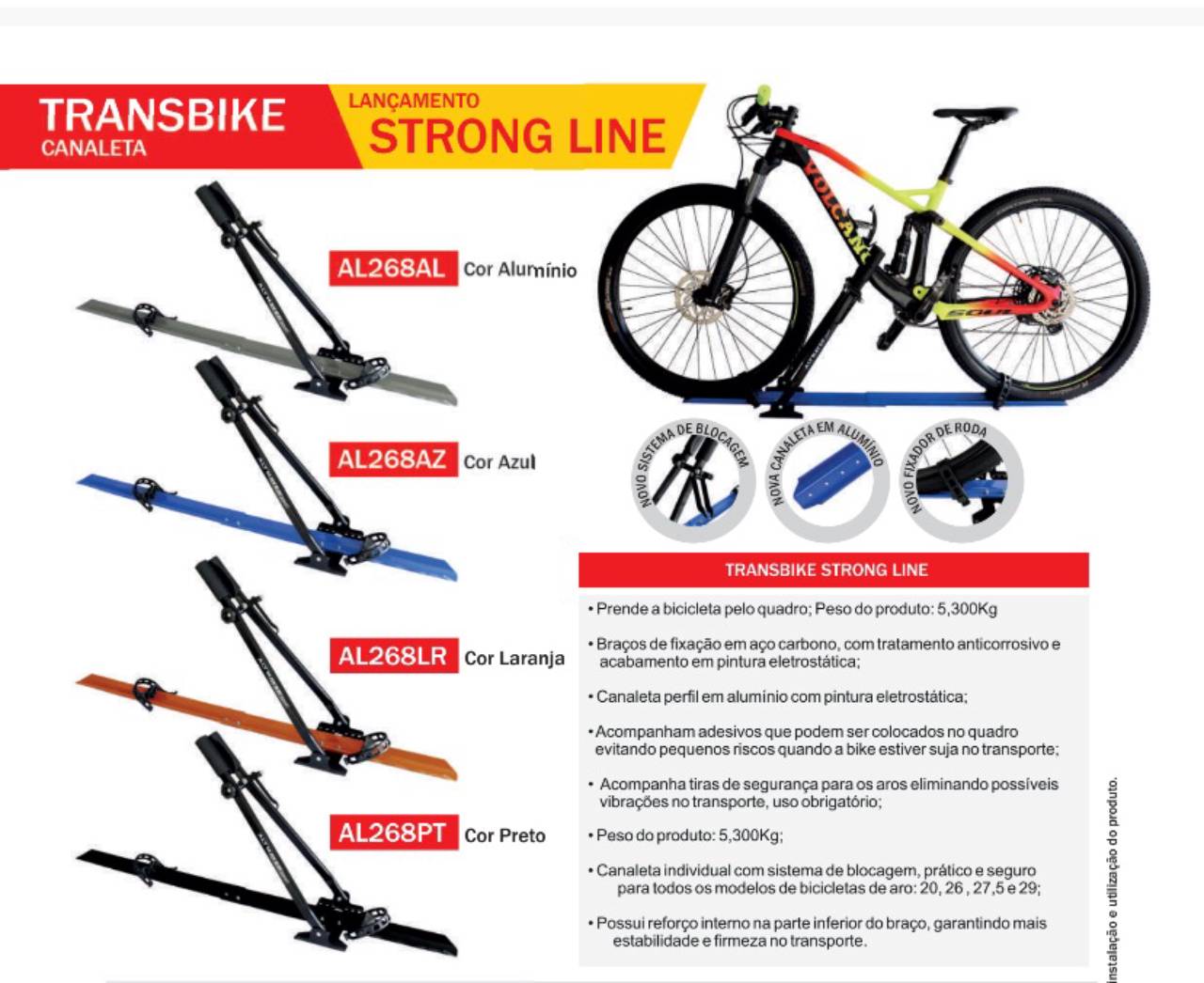 Diferentes tipos e modelos de transbike podem ser montados em seu teto, engate, caçamba ou porta-malas.