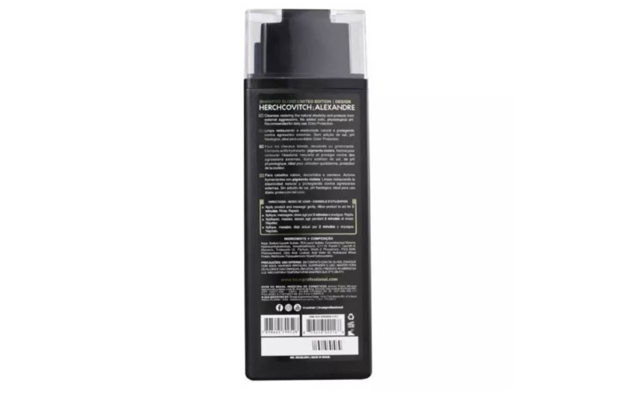 Truss Alexandre Herchcovitch Blond Shampoo hidrata e devolve o toque sedoso dos fios enquanto evita o desbotamento da cor. Sua embalagem conta com estampas exclusivas criadas pelo estilista Alexandre Herchcovitch. Com ele, você conquista um loiro bonito, com força e aspecto saudável.