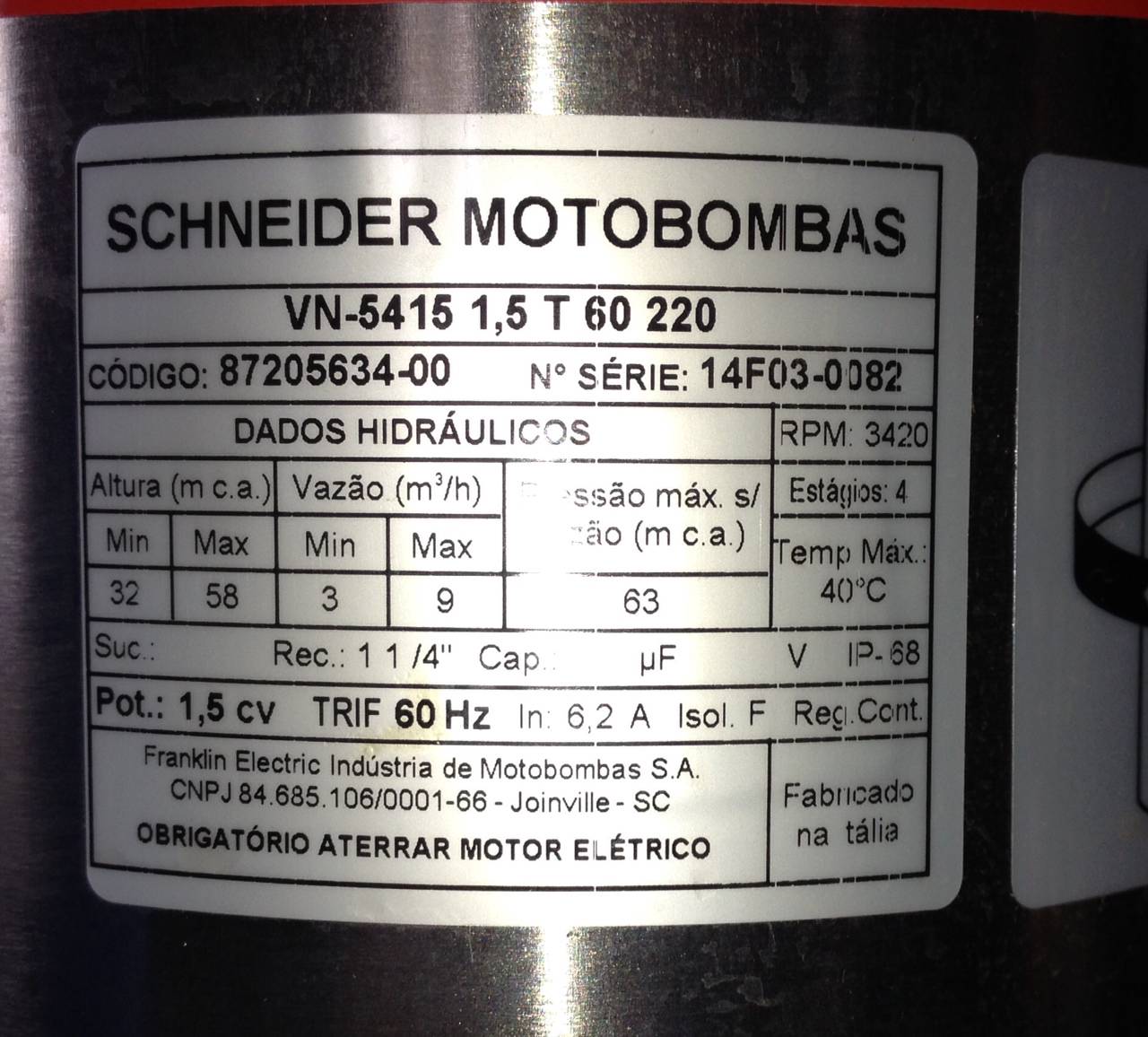 Bomba VN-5415 1,5cv Trifásico: Potência e Eficiência para Irrigação em Lençóis Paulista/SP