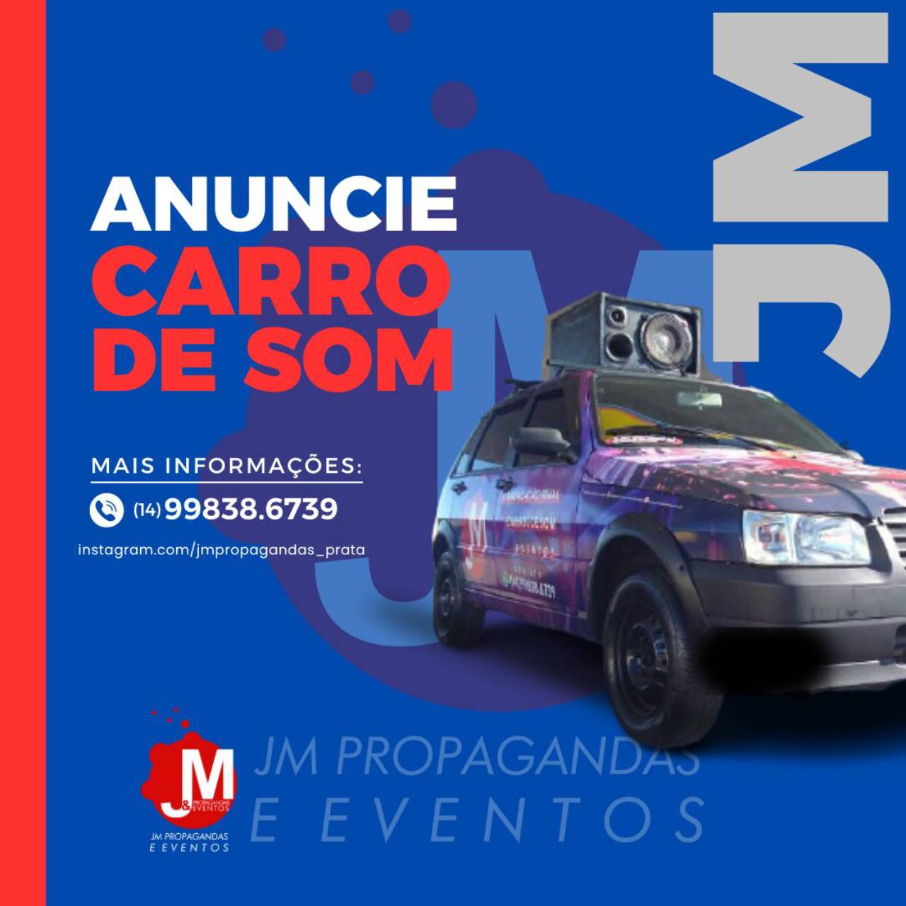 Disponíveis em São Manuel, SP, os carros de som profissionais da JM contam com equipamentos de áudio potentes, locutores experientes e programação personalizada, adaptando a comunicação ao perfil do público e ao objetivo da campanha. Tudo isso com rotas planejadas para alcançar os principais pontos da cidade e regiões próximas.