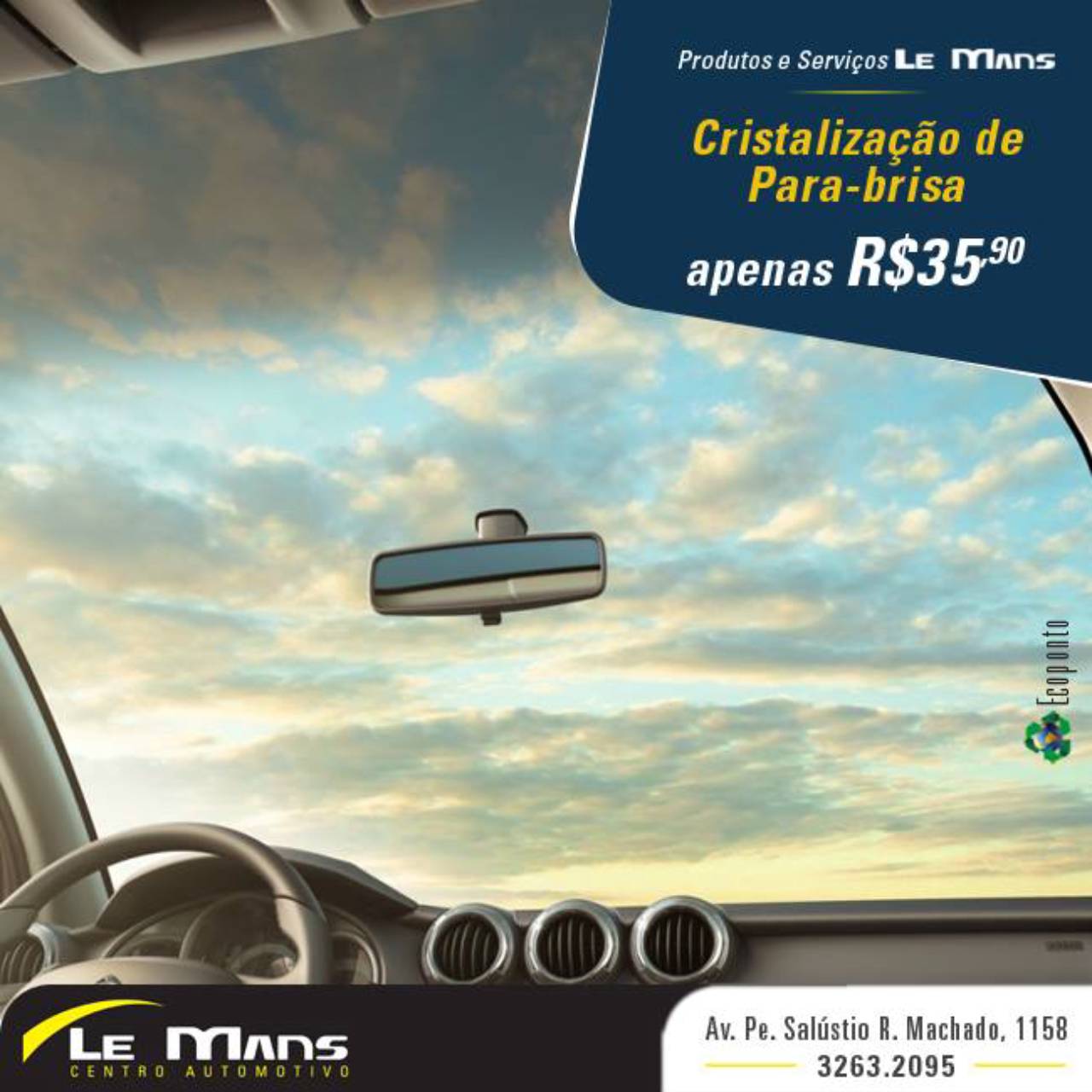 A cristalização consiste na aplicação de uma substância repelente à água. Com sua grande efetividade, torna a condição de direção na chuva semelhante a de dias com tempo estável.