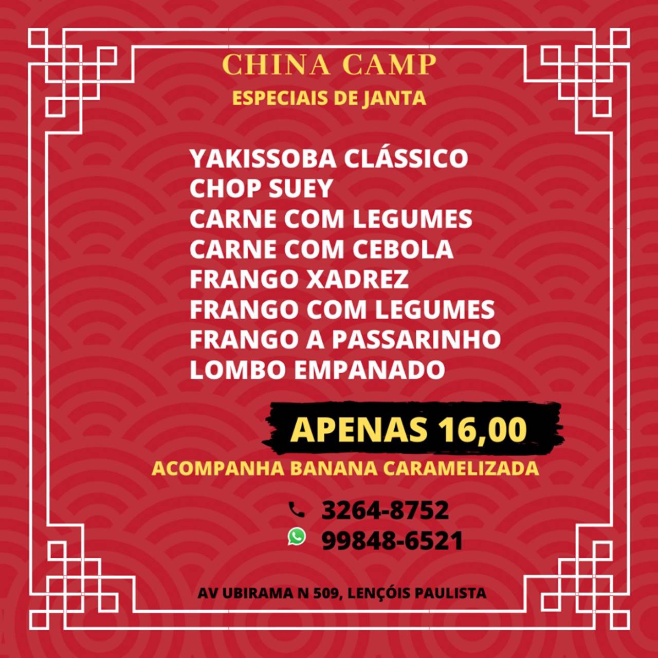 Pratos da culinária oriental, Lençóis Paulista - China Camp