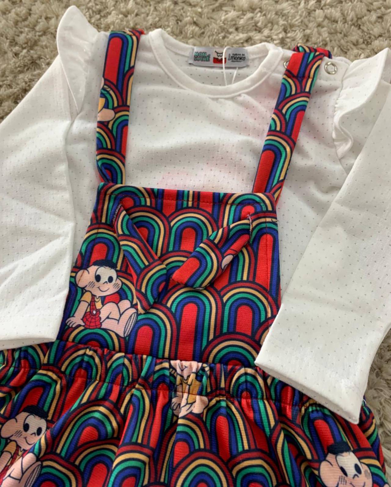 Vestido estilo salope da coleção Turma da Mônica. Detalhe de babado na manga. Super estiloso.