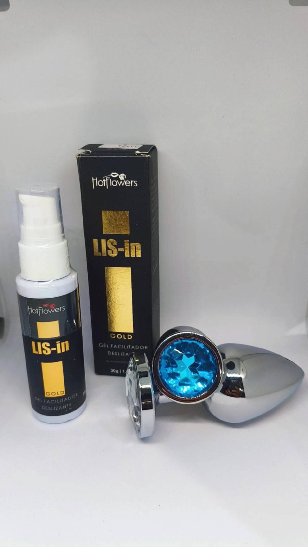 O kit para sexo anal da Gii Sexy Shop inclui jóia anal e lubrificante em spray, oferecendo conforto, segurança e prazer em um só conjunto.