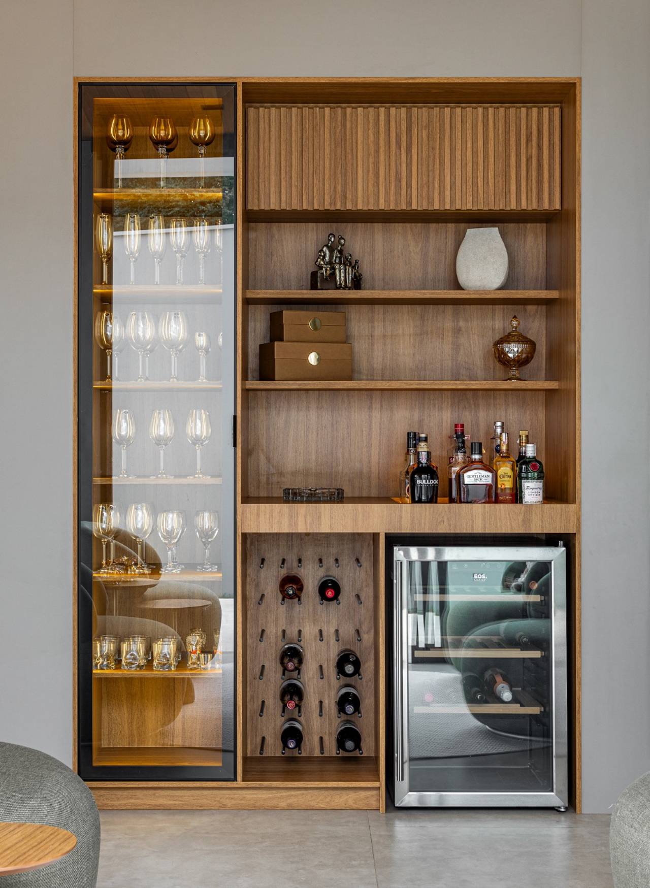 Pensado sob medida, o Bar Planejado aproveita cada centímetro disponível, garantindo praticidade e beleza. Entre os principais benefícios estão: